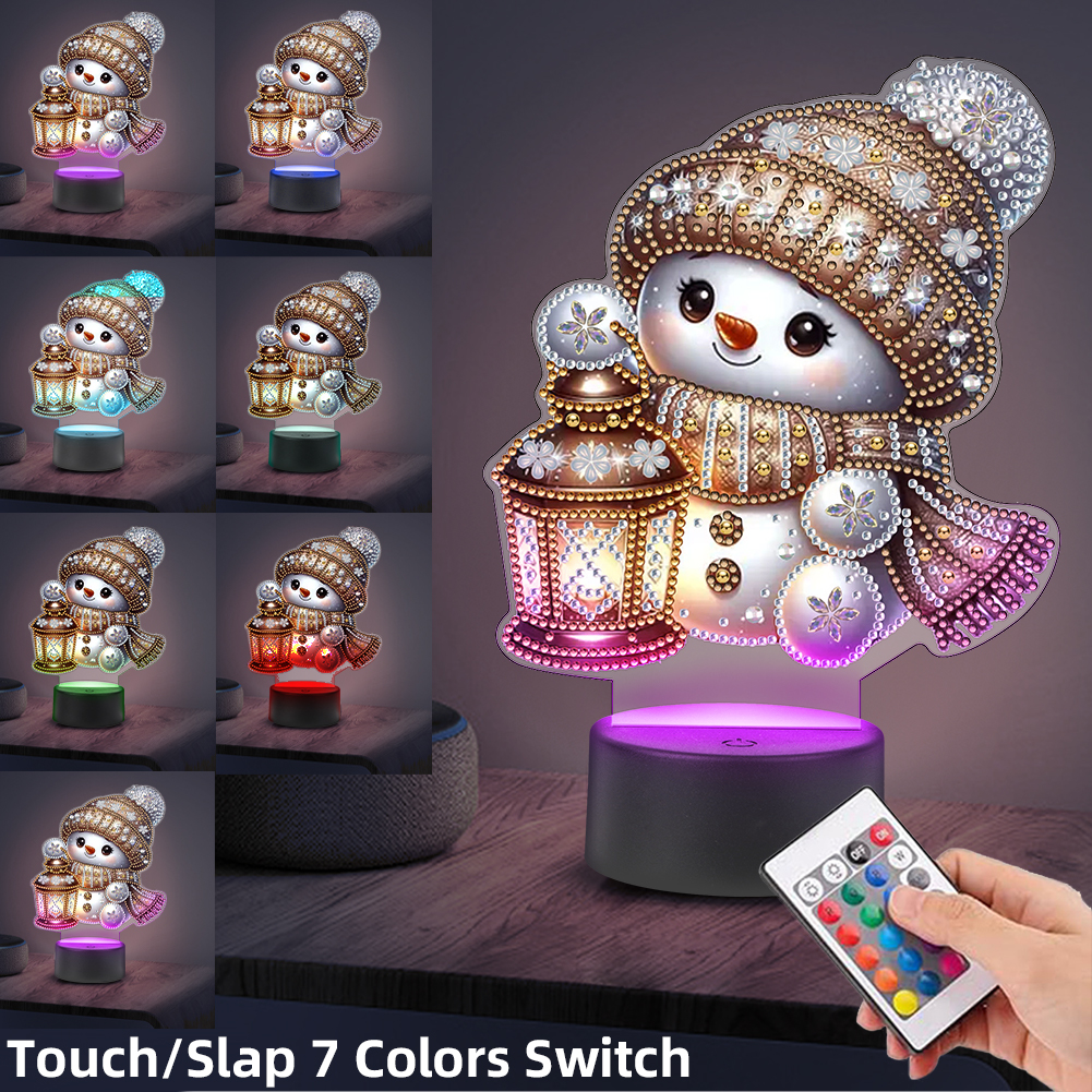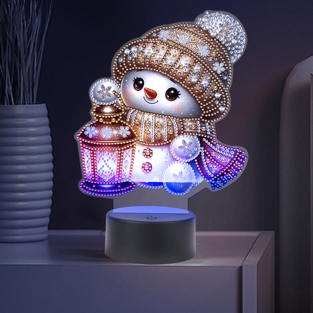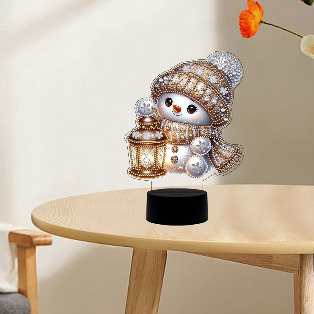 Acrylic Double Sided Xmas Snowman 5D Diamond Painting Night Light for Tabletop