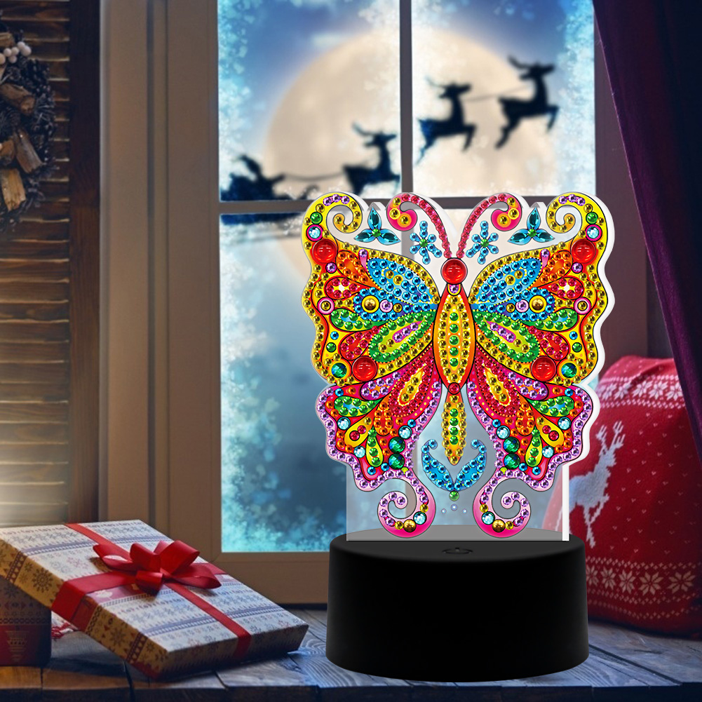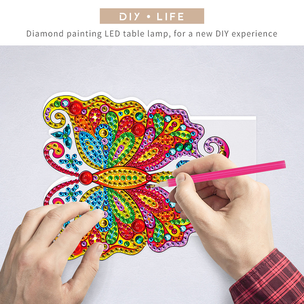 Butterfly DIY Diamond Painting LED Light Special Shaped Embroidery Rhinestones Night Lamp Needlework Kit Home Desk Table Decor Ornament