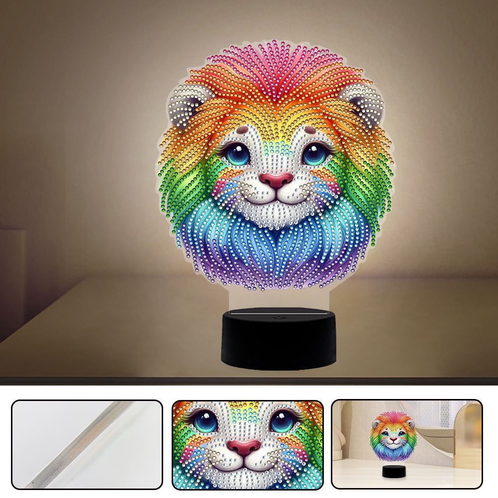DIY Animal Lion Diamond Painting Night Light Diamond Art Lamp Home Decoration