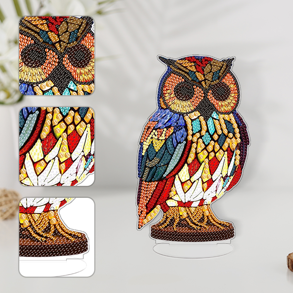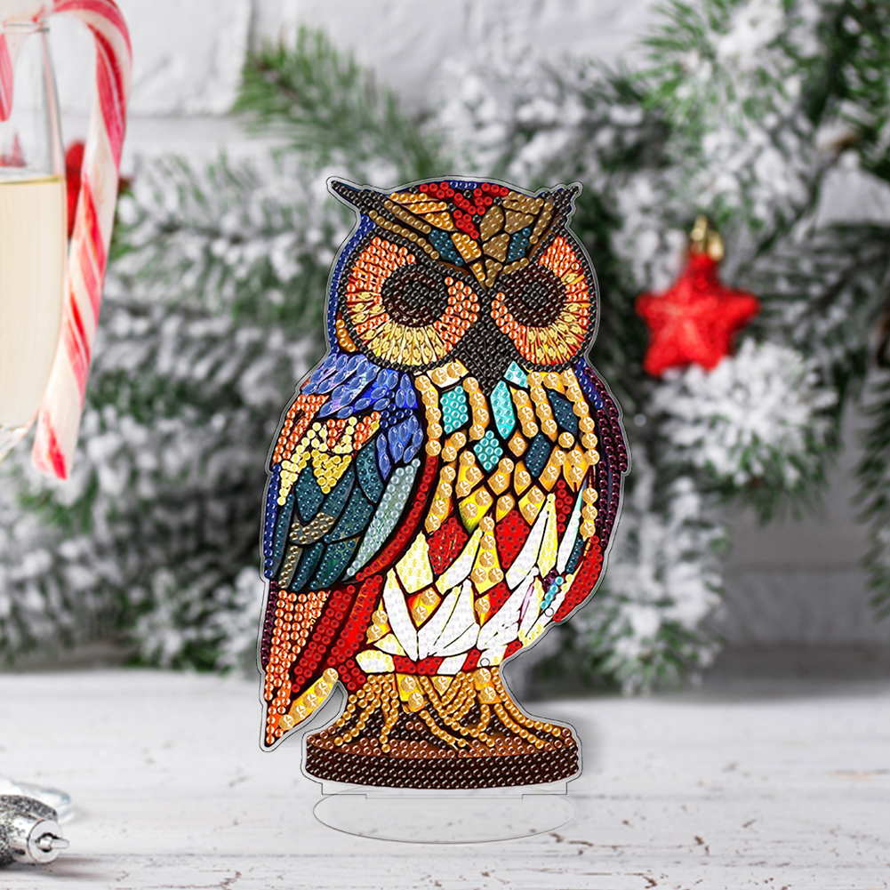DIY Owl Acrylic Single-Sided Diamond Painting Desktop Decoration with Light for Office Desktop Decor