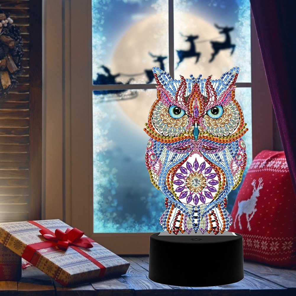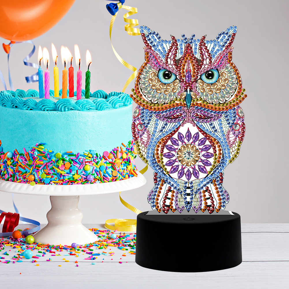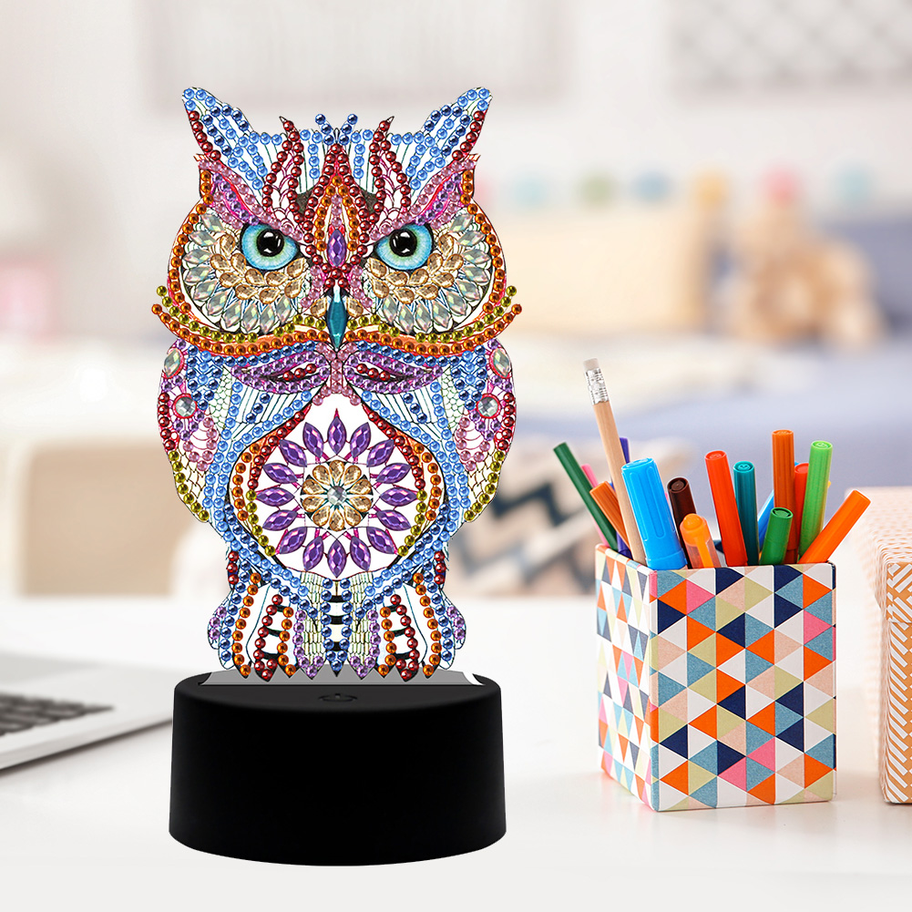 DIY Special Shaped Diamond Painting Owl LED Night Light Cross Stitch Embroidery Mosaic Kit Home Decoration Lamp