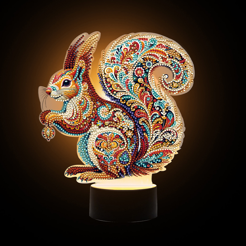 DIY Squirrel Acrylic Diamond Painting Night Light 5D DIY Diamond Painting Lamp