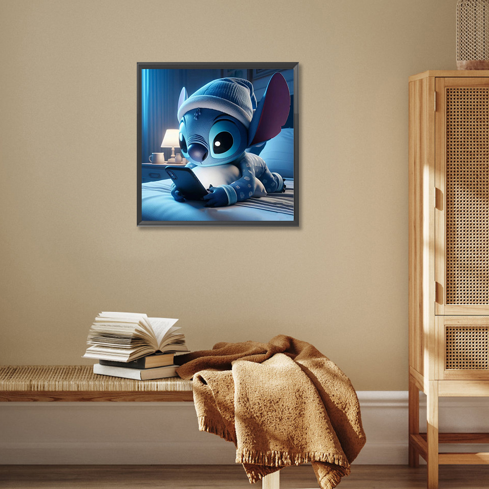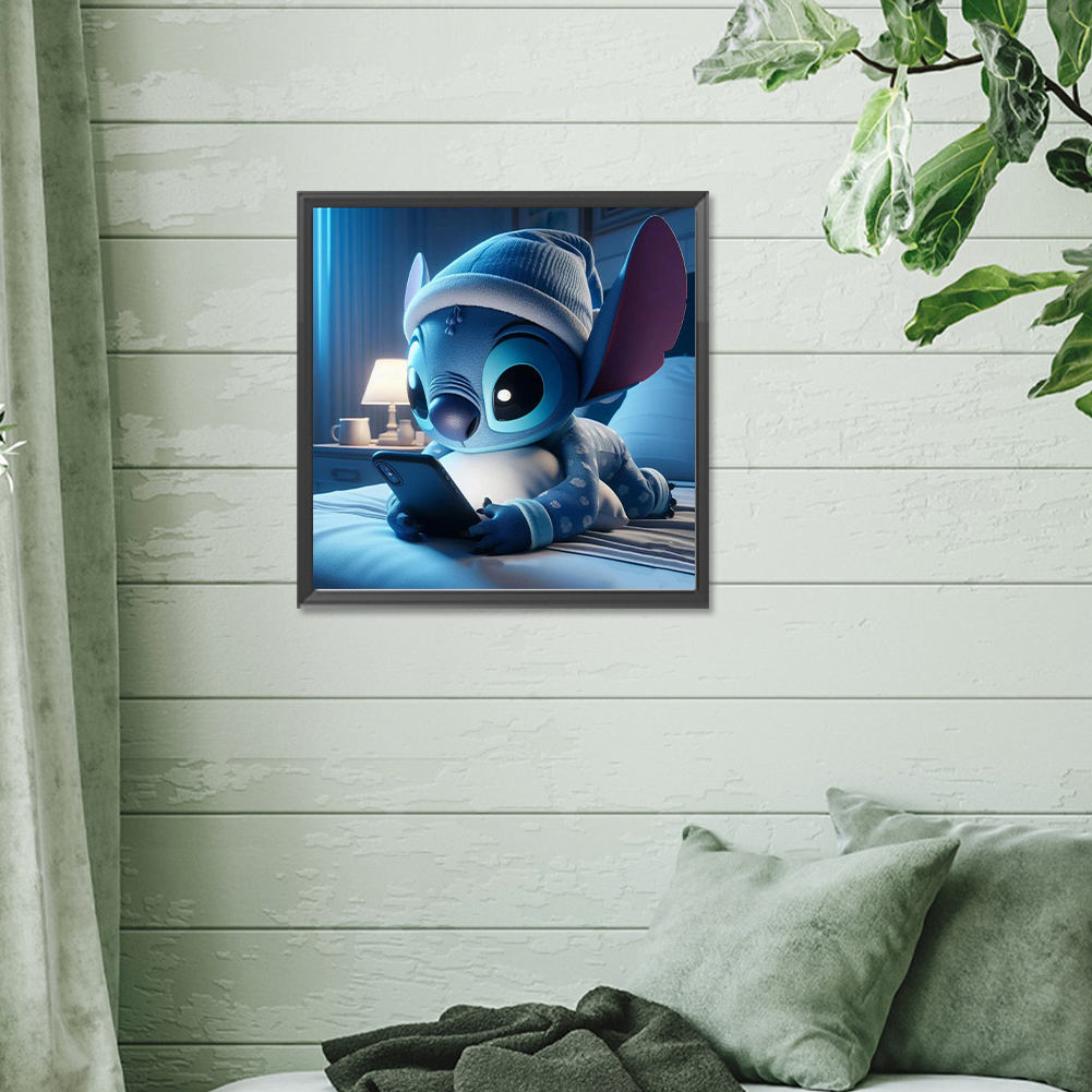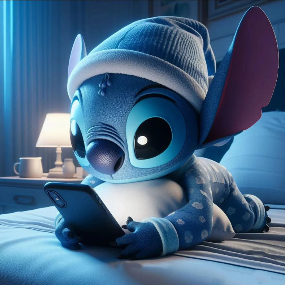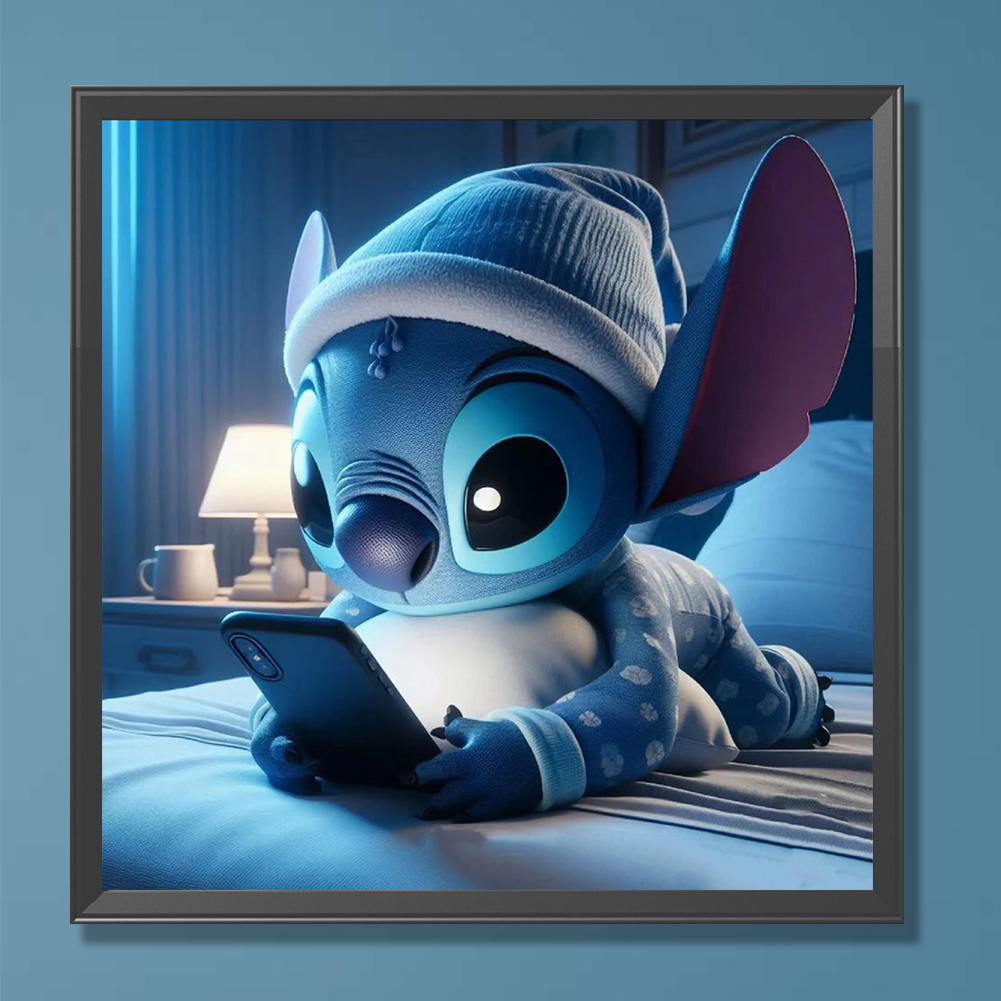 Diamond Painting - Full Round Drill - Stitch Playing Phone(Canvas|30*30cm)