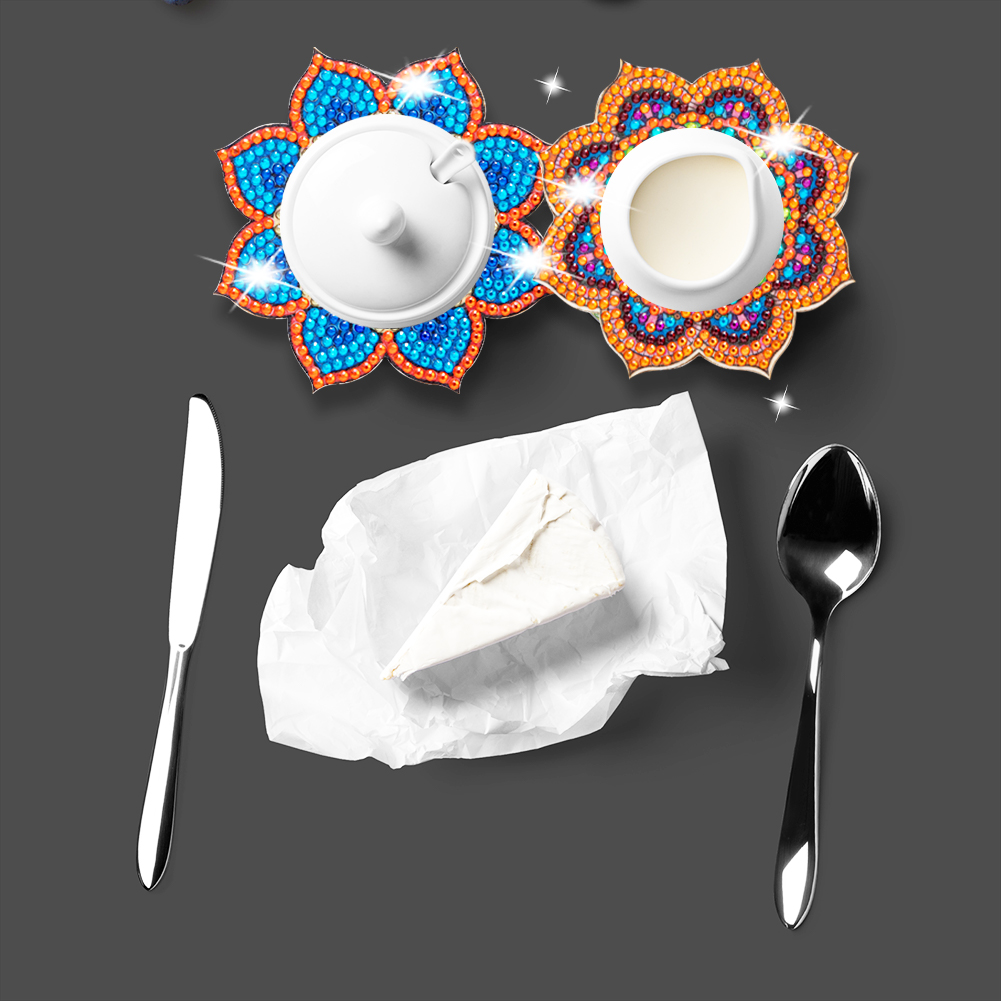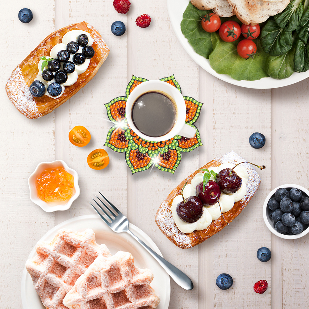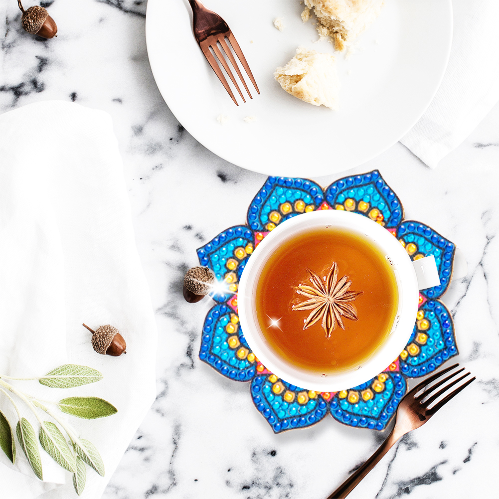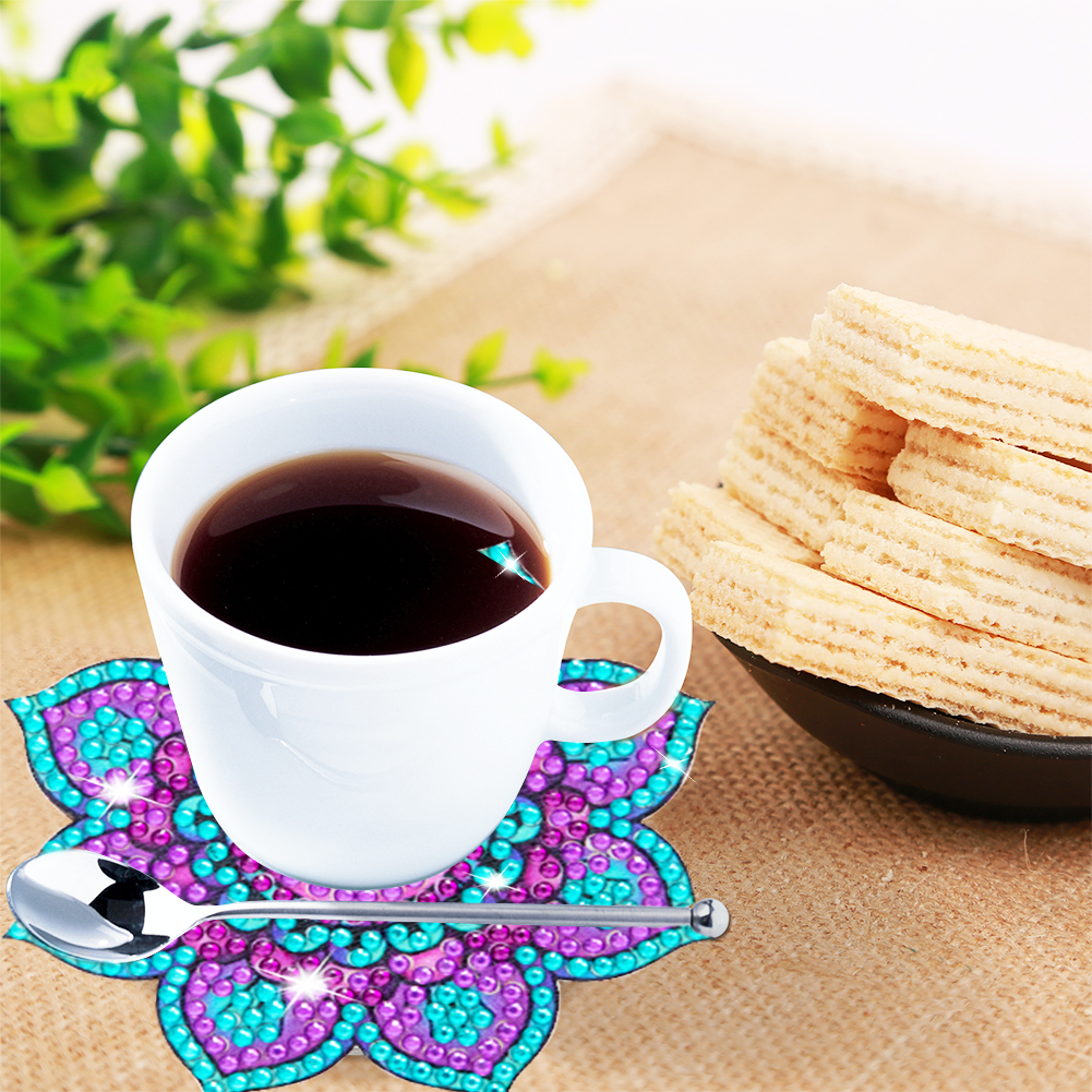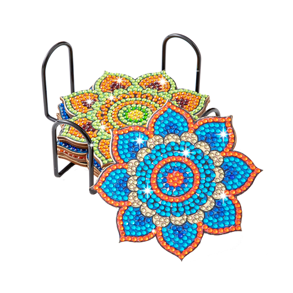 6pcs Datura DIY Diamonds Painting Coaster Woodiness with Rack Cup Pad Decor