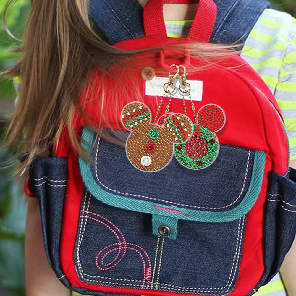 6pcs DIY Xmas Mickey Mouse Diamond Keychains Pendant Double Sided Diamond Art Keychains