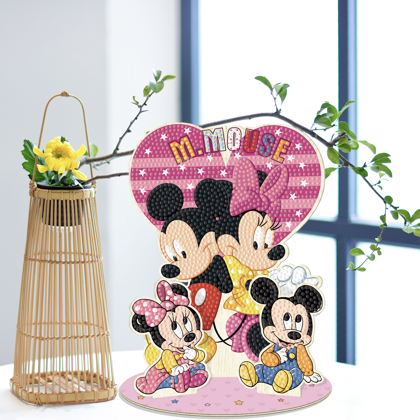DIY Minnie Mickey Mouse Wooden Diamond Painting Desktop Combination Ornaments Kit for Office Desktop Decor
