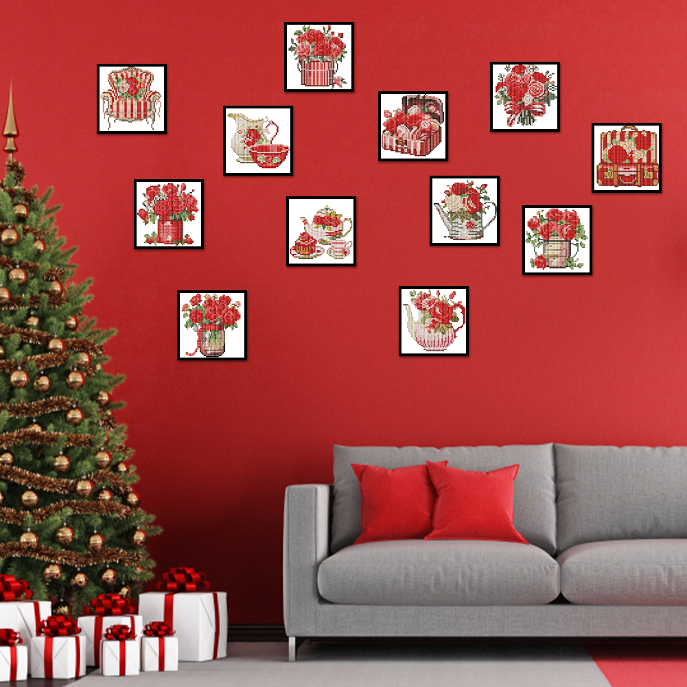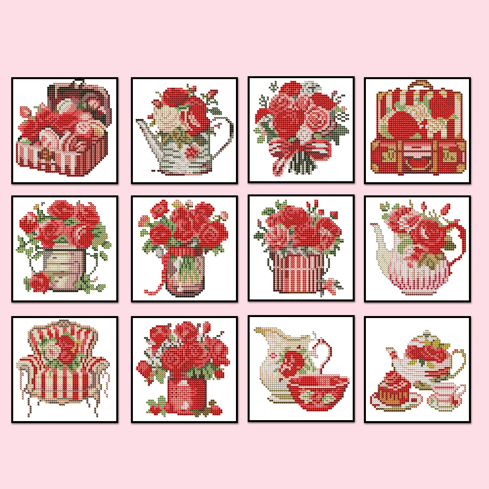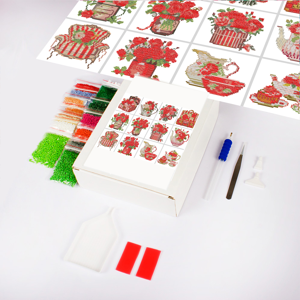12pcs Flowers DIY Mini Round Diamond Painting Table Decor No Frame15x15cm