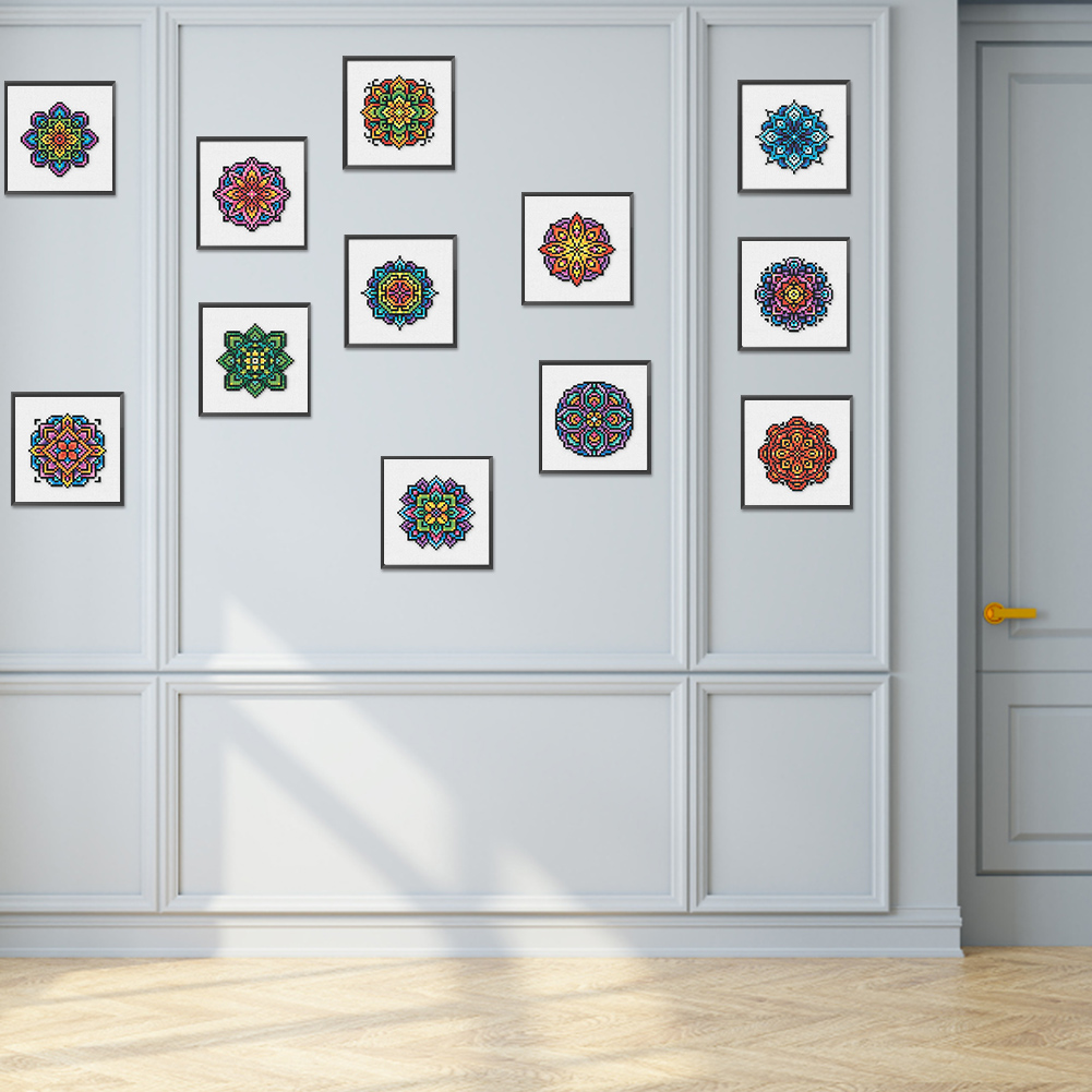 12pcs Mandala DIY Mini Square Diamond Painting for Desktop Decor No Frame(16*16cm)