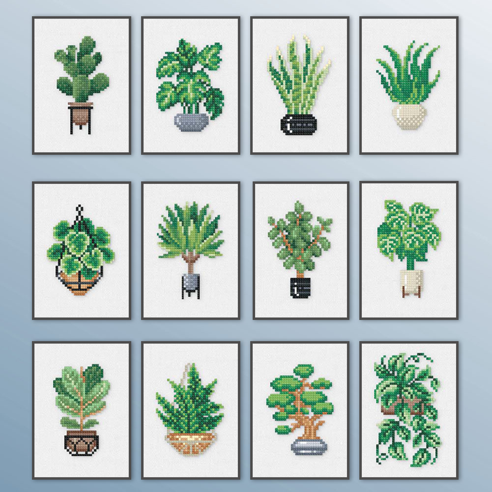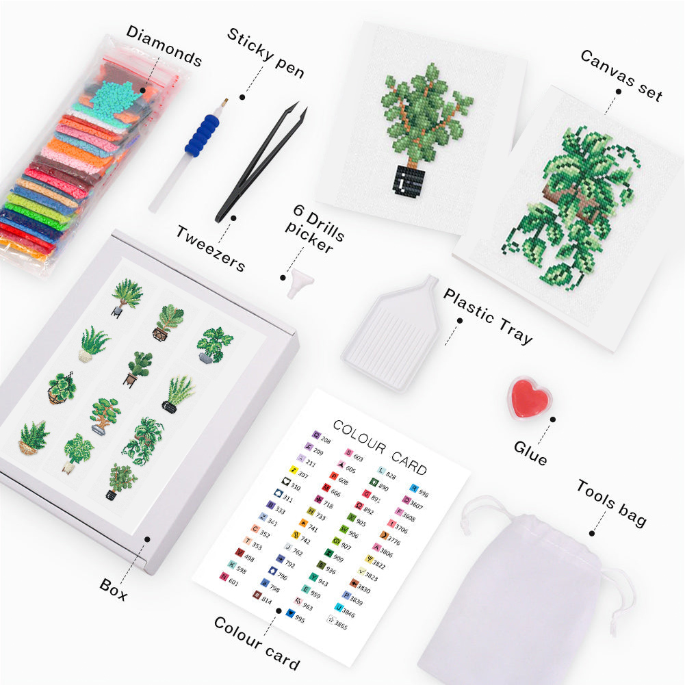 12pcs Plants DIY Mini Square Diamond Painting for Desktop Decor No Frame(14*18cm)