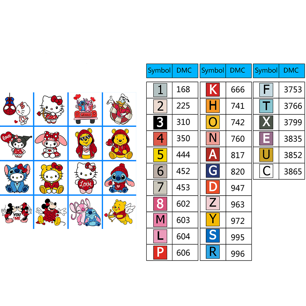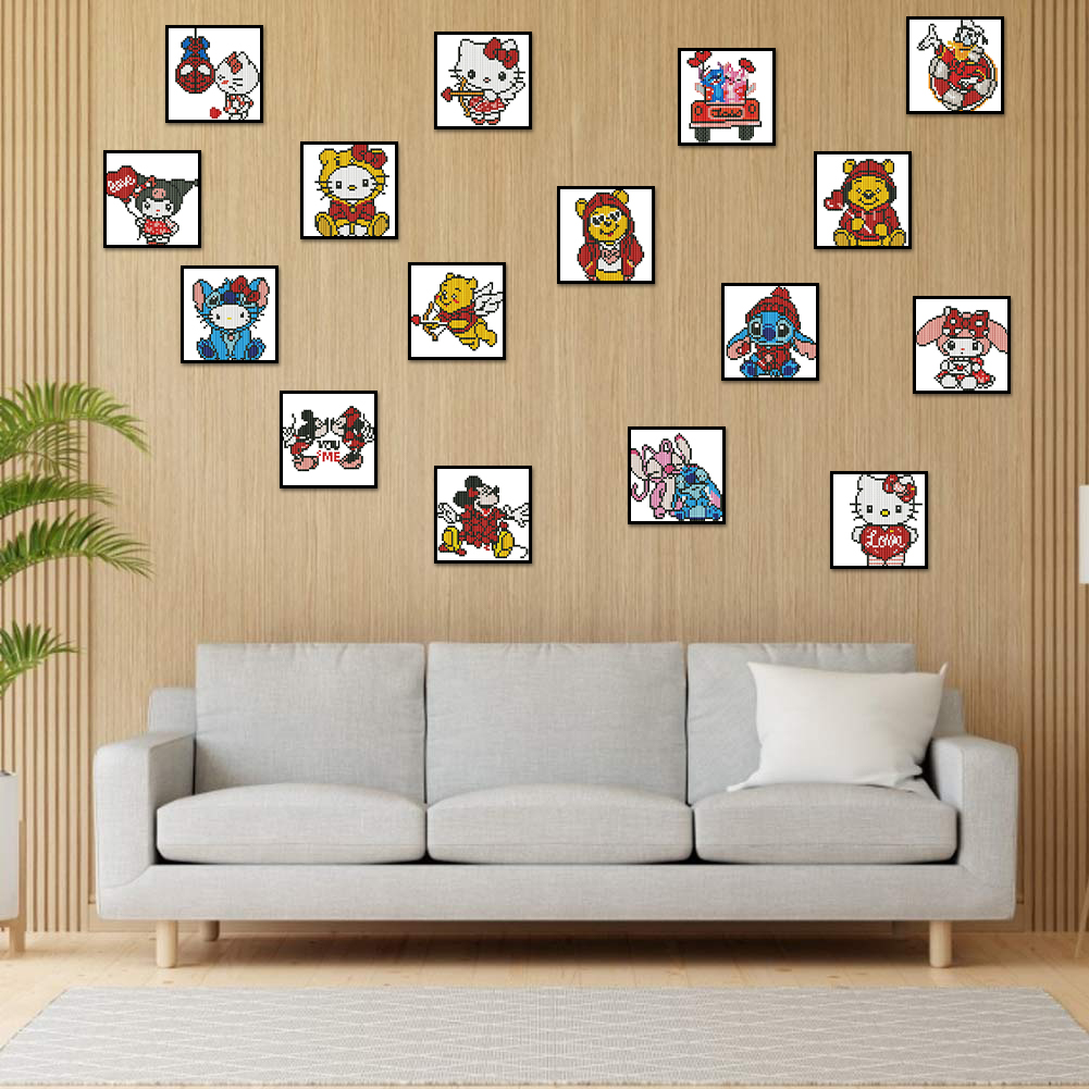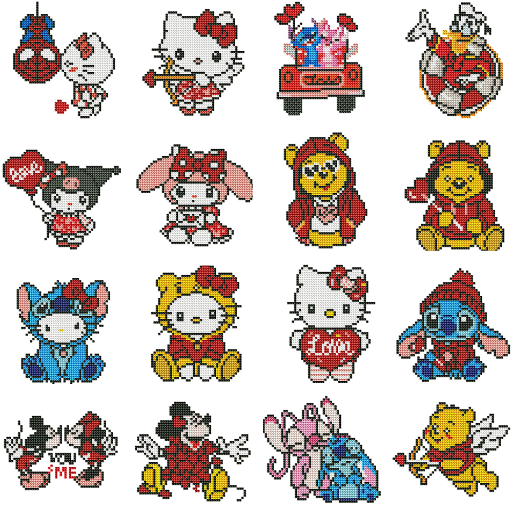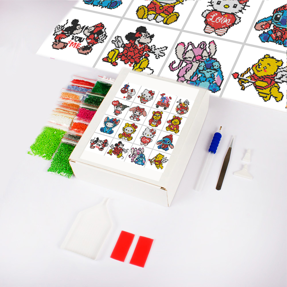 16pcs Cartoon DIY Mini Partial Round Diamond Painting for Table Decor No Frame(15*15cm)