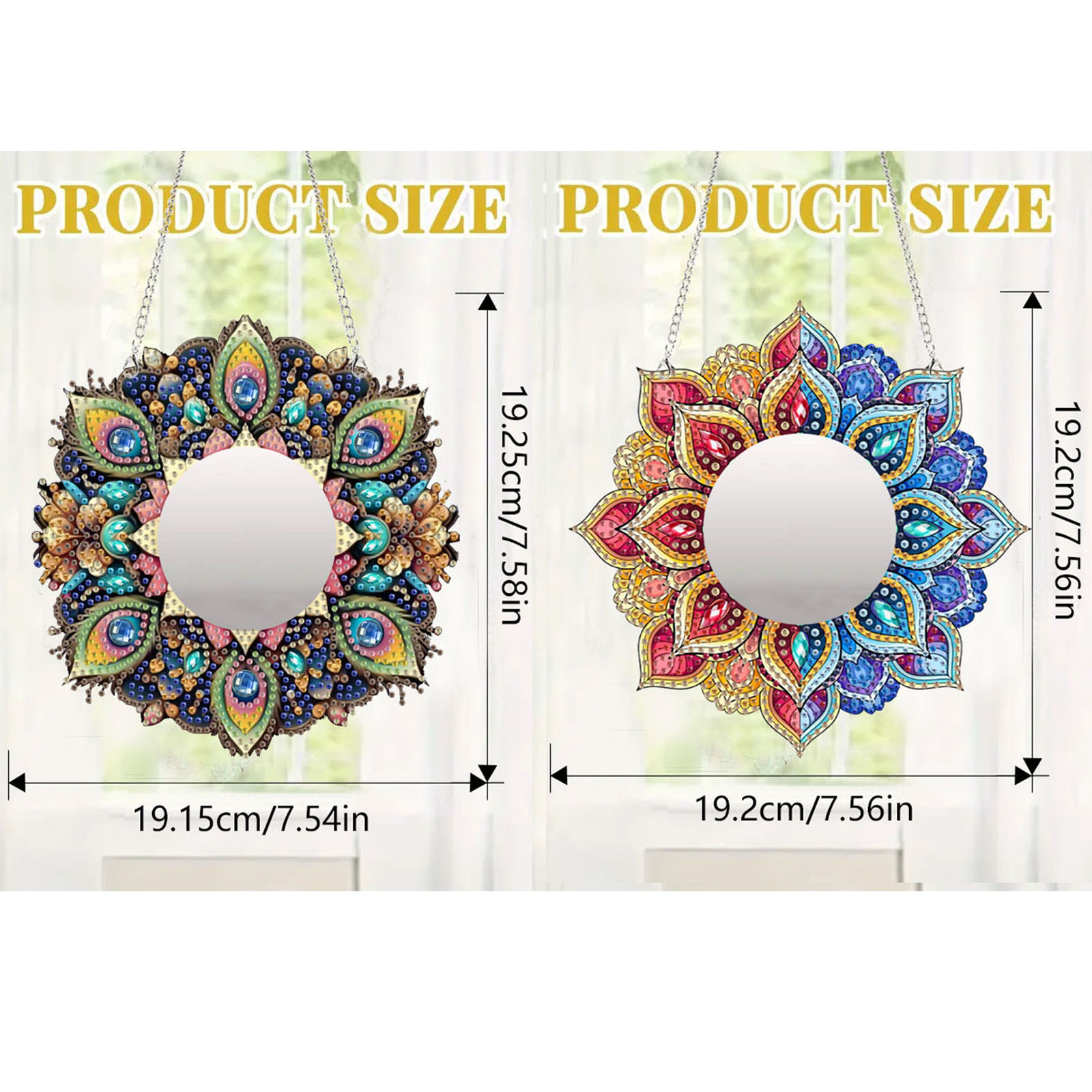 2D Flat DIY Flowers Hanging Mirror Diamond Art Kits Wall Door Decoration