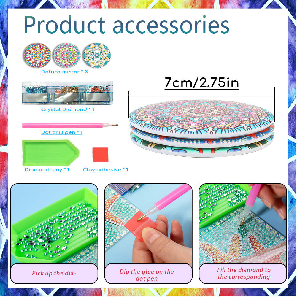3pcs Diamond Painting Makeup Mirror Portable DIY Datura for Girl