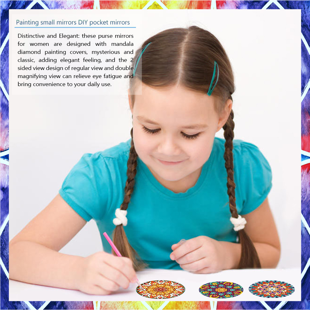 3pcs Diamond Painting Makeup Mirror Portable DIY Datura for Girl