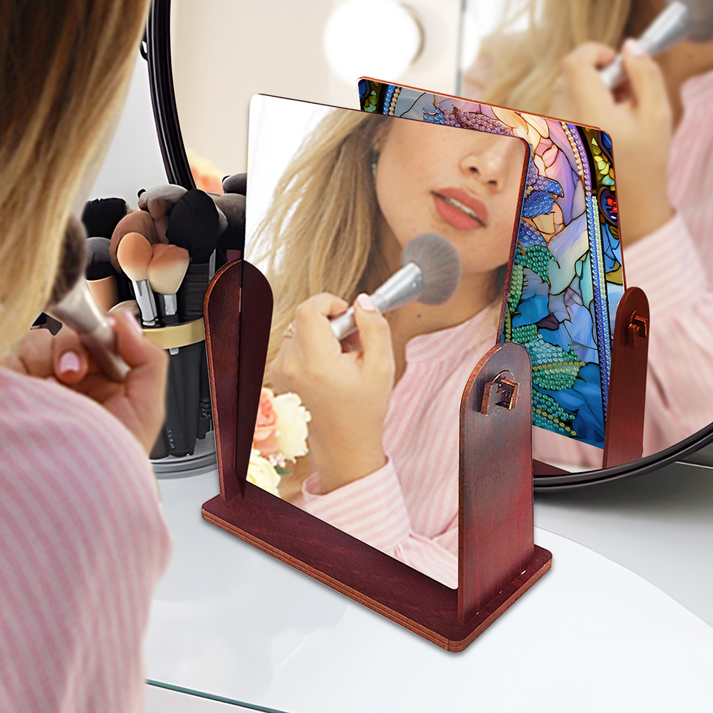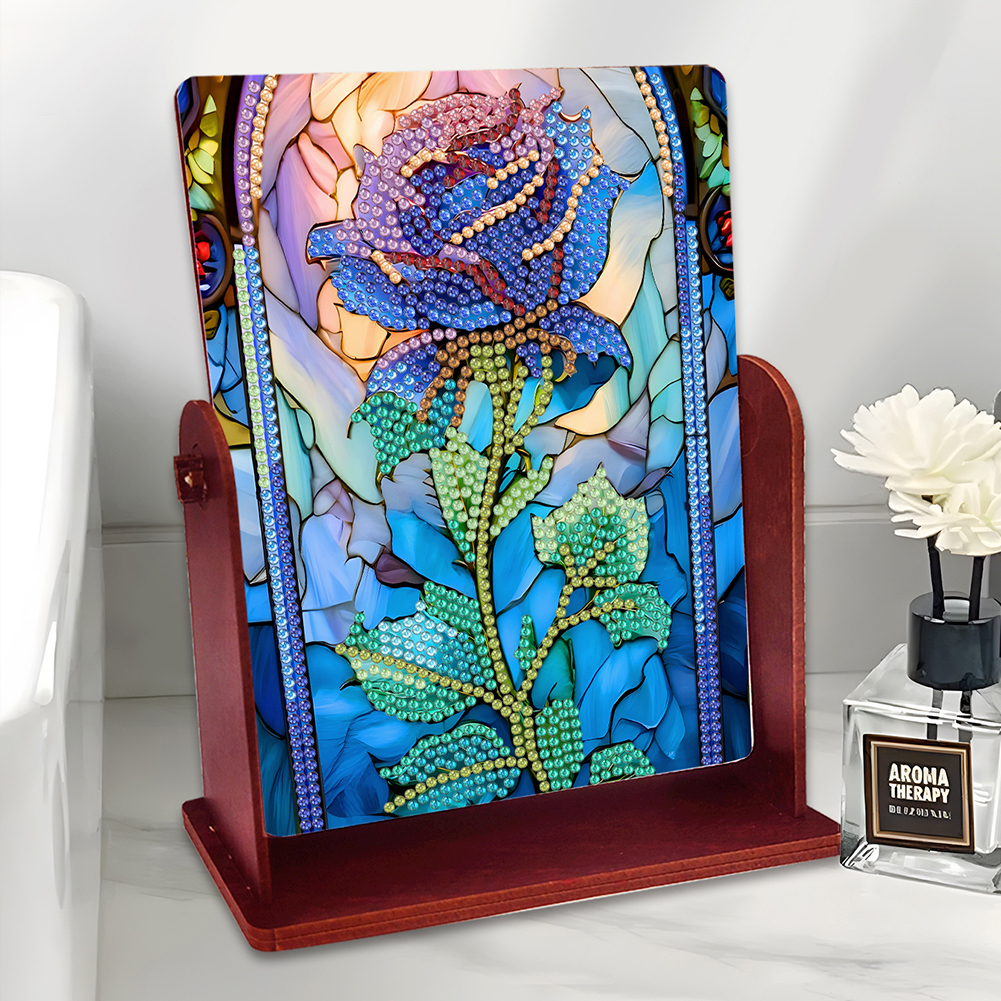Blue Roses Special Shape Diamond Painting Mirror Table Top Diamond Mirror Kit