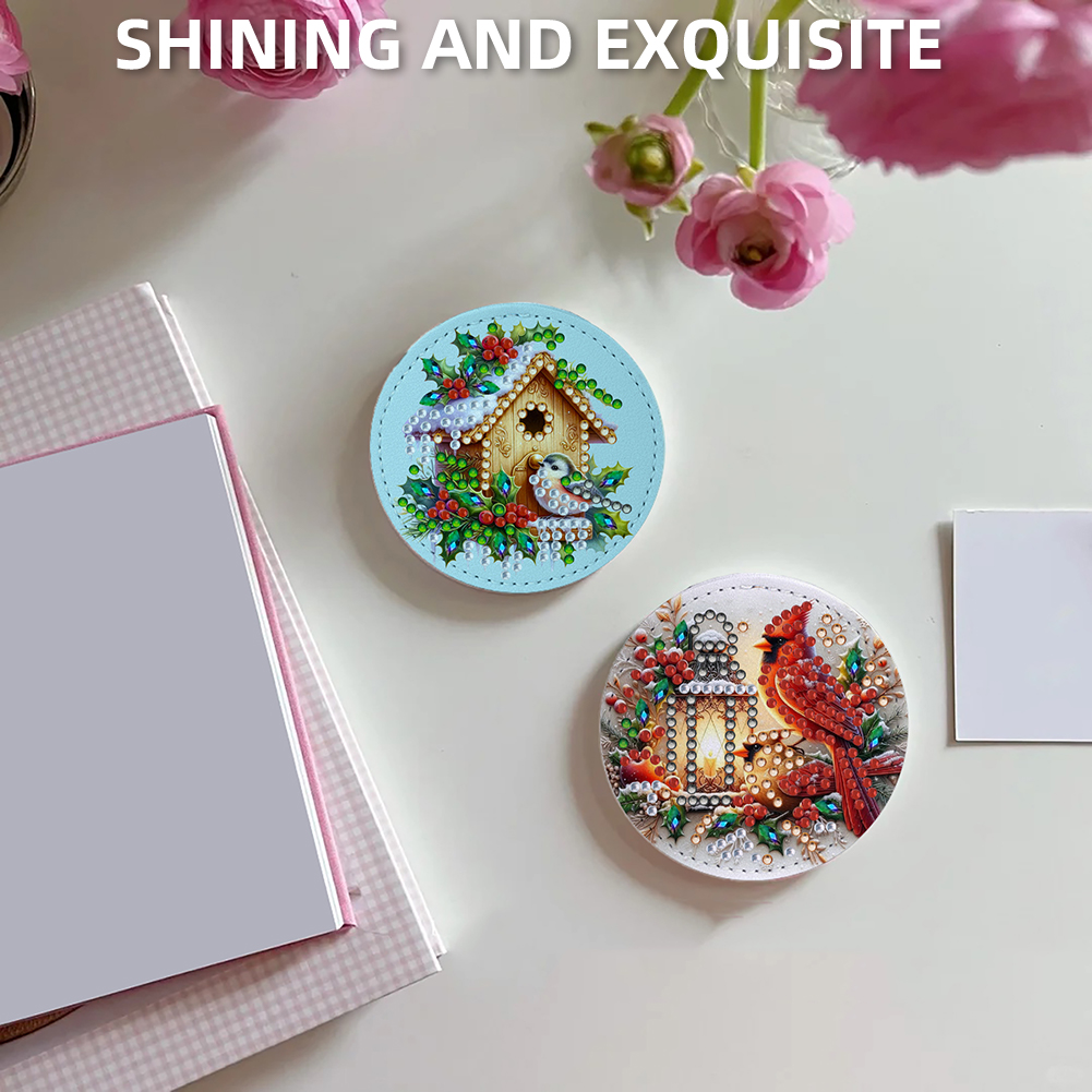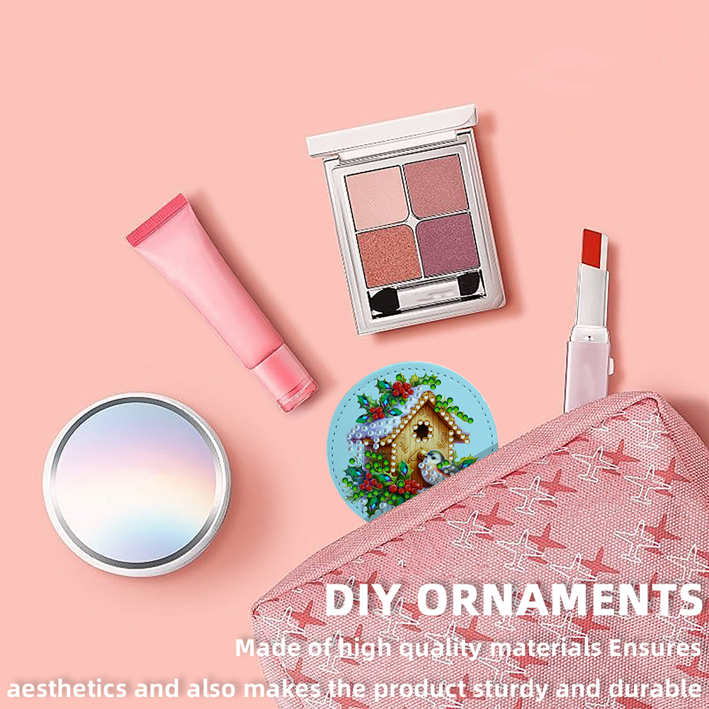 DIY Diamond Art Portable Cosmetic Mirror Round Diamond Painting Crafts (Hut)