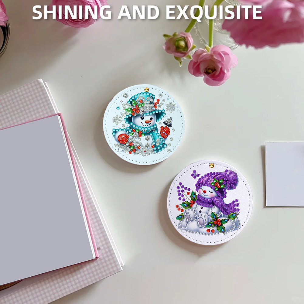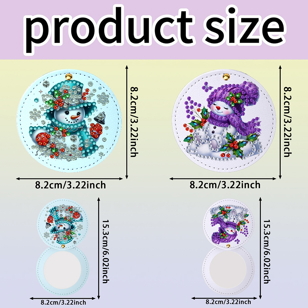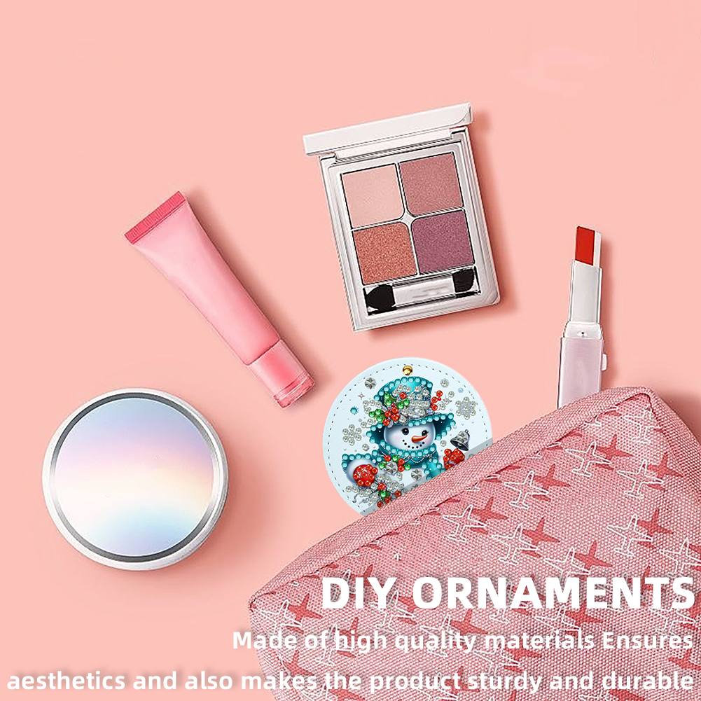 DIY Diamond Art Portable Cosmetic Mirror Round Diamond Painting Crafts (Snowman)