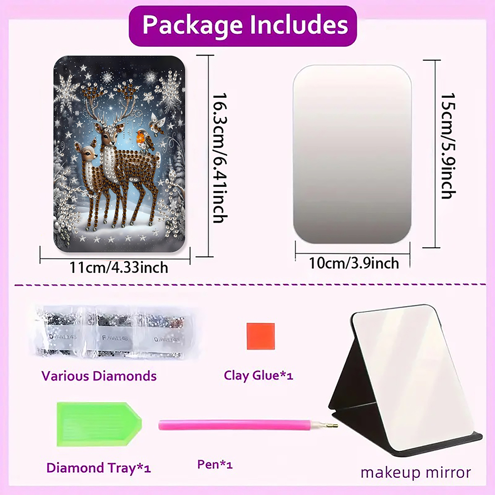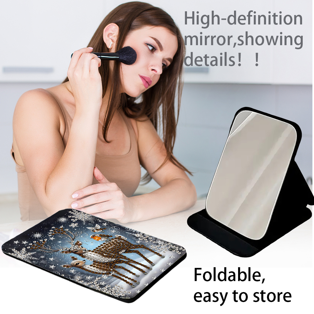 DIY Diamond Art Shiny Crystal Mirror Lightweight Standing Makeup Mirror (Elk)