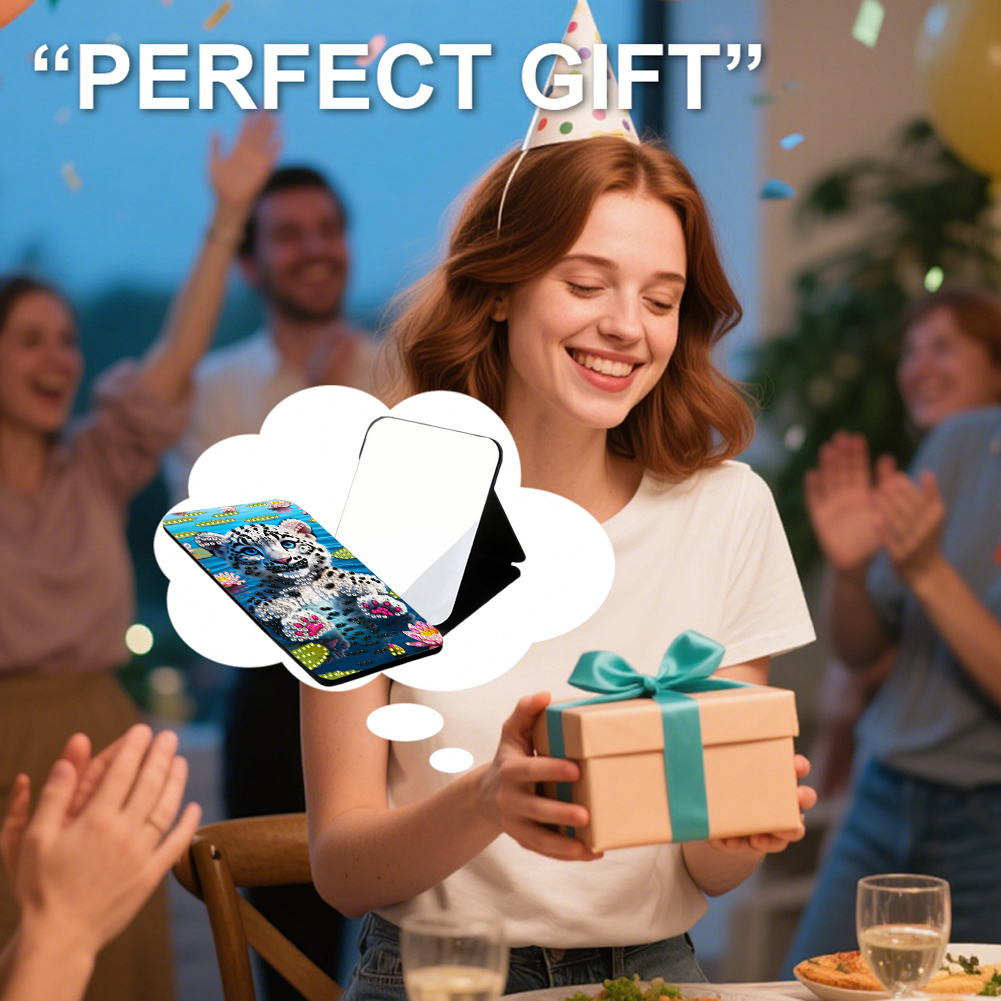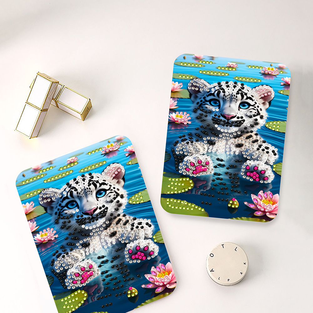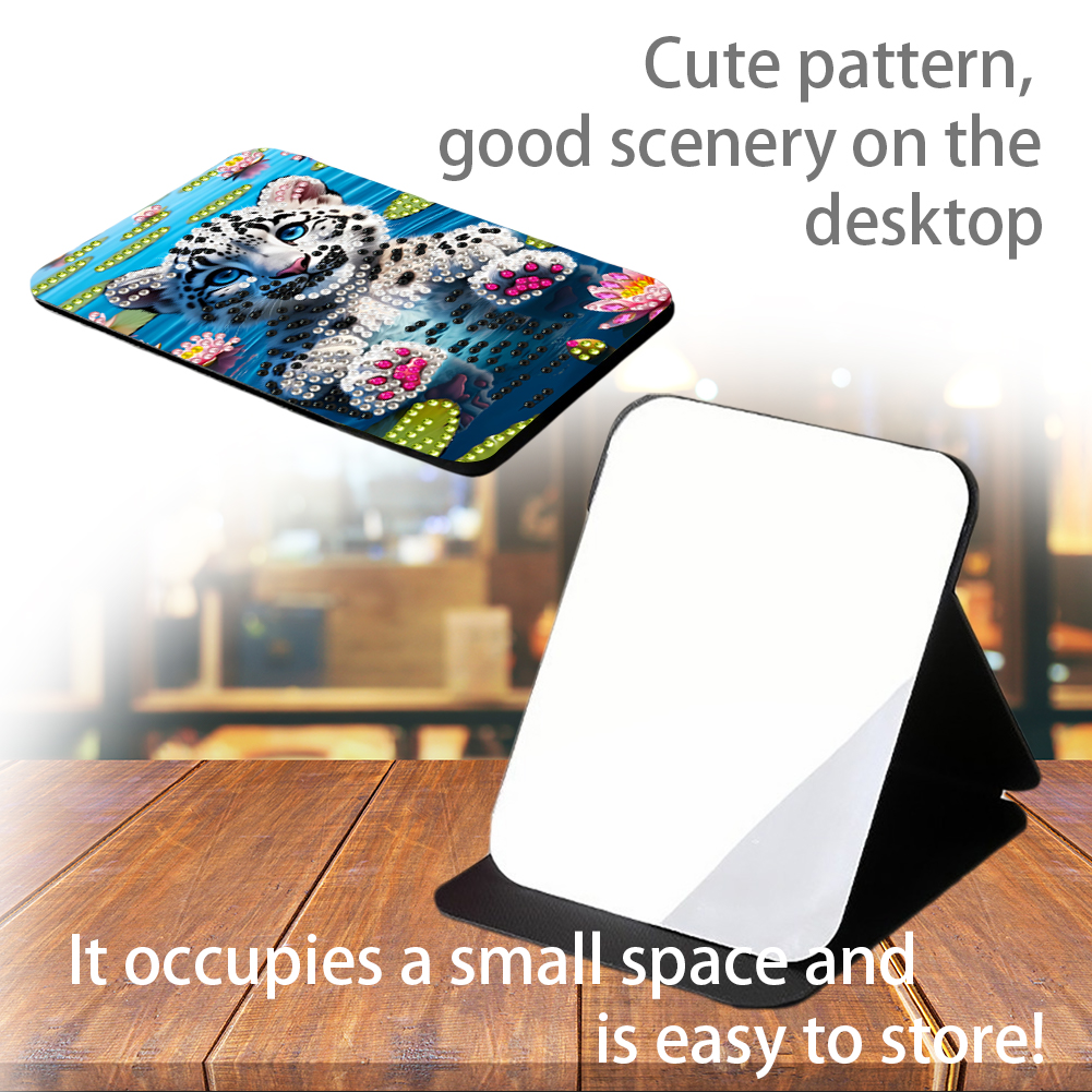 DIY Diamond Art Shiny Crystal Mirror Lightweight Standing Makeup Mirror (Tiger)