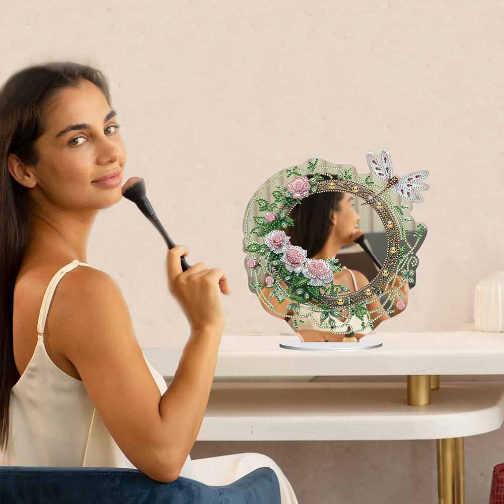 DIY Dragonfly Flower Acrylic Diamond Art Mirror Home Decoration