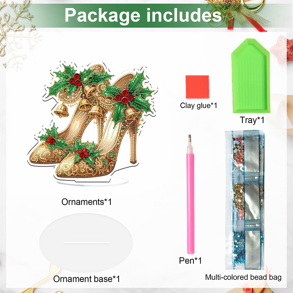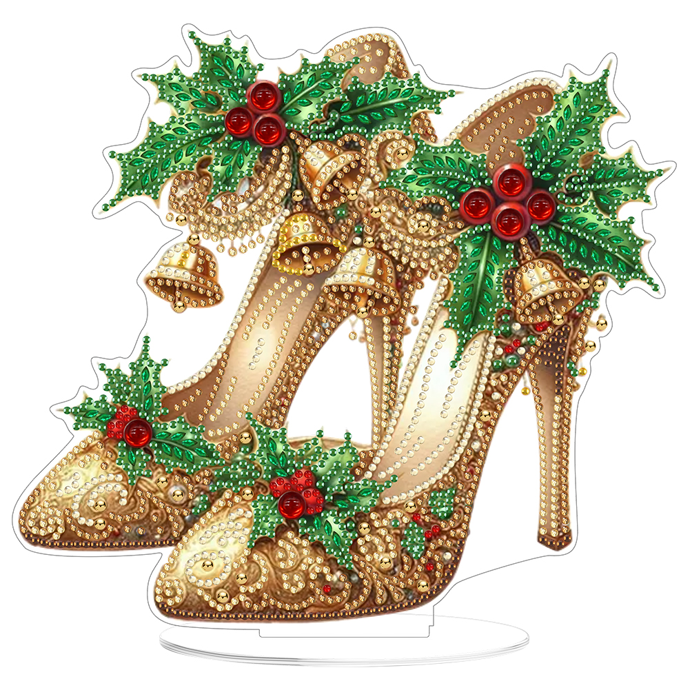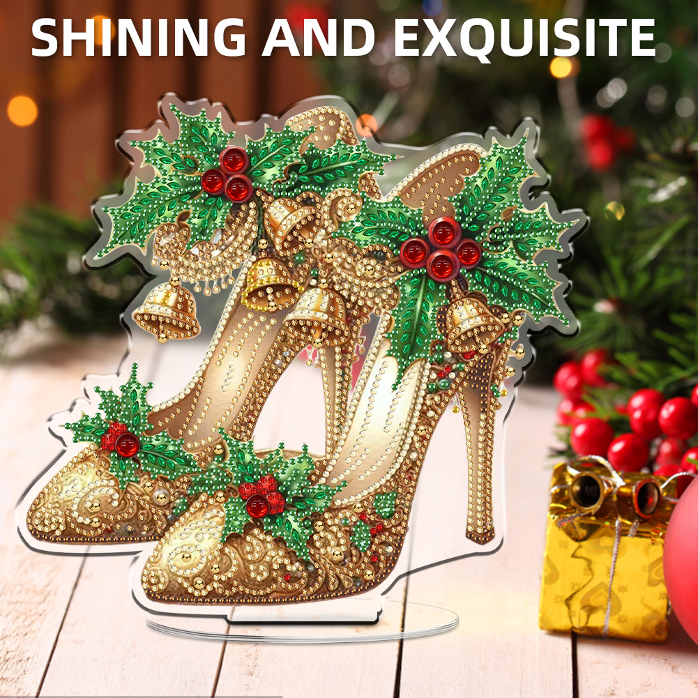 2D Flat Xmas High Heels DIY Acrylic Desktop Diamond Art Kits for Adults Beginner