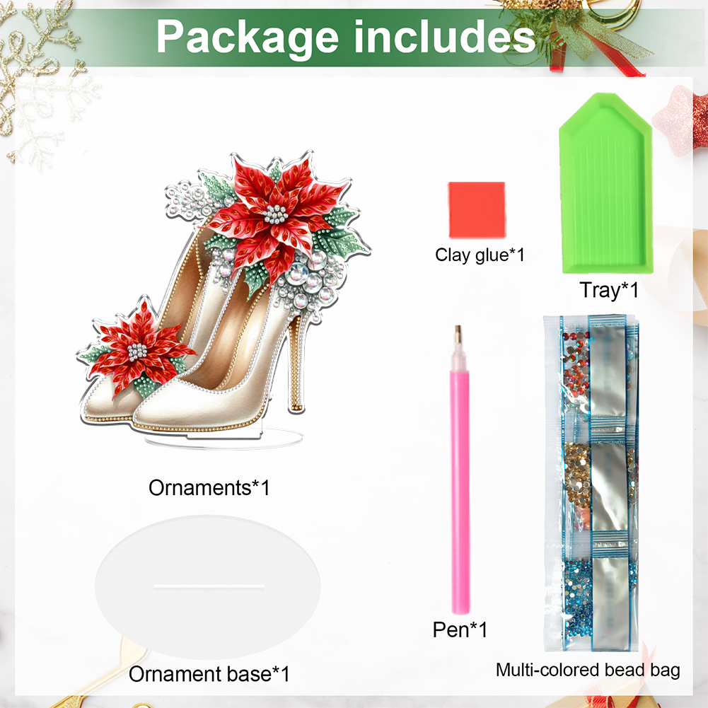 2D Flat Xmas High Heels DIY Acrylic Desktop Diamond Art Kits for Adults Beginner