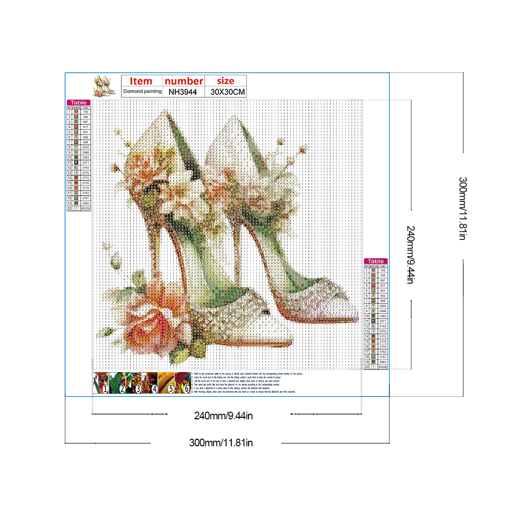 Full Round Diamond Painting 30*30cm - Flower High Heels