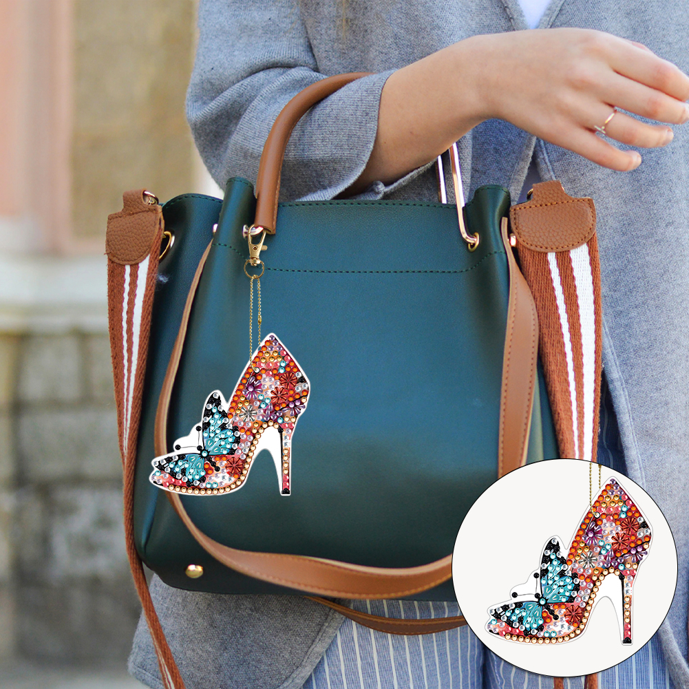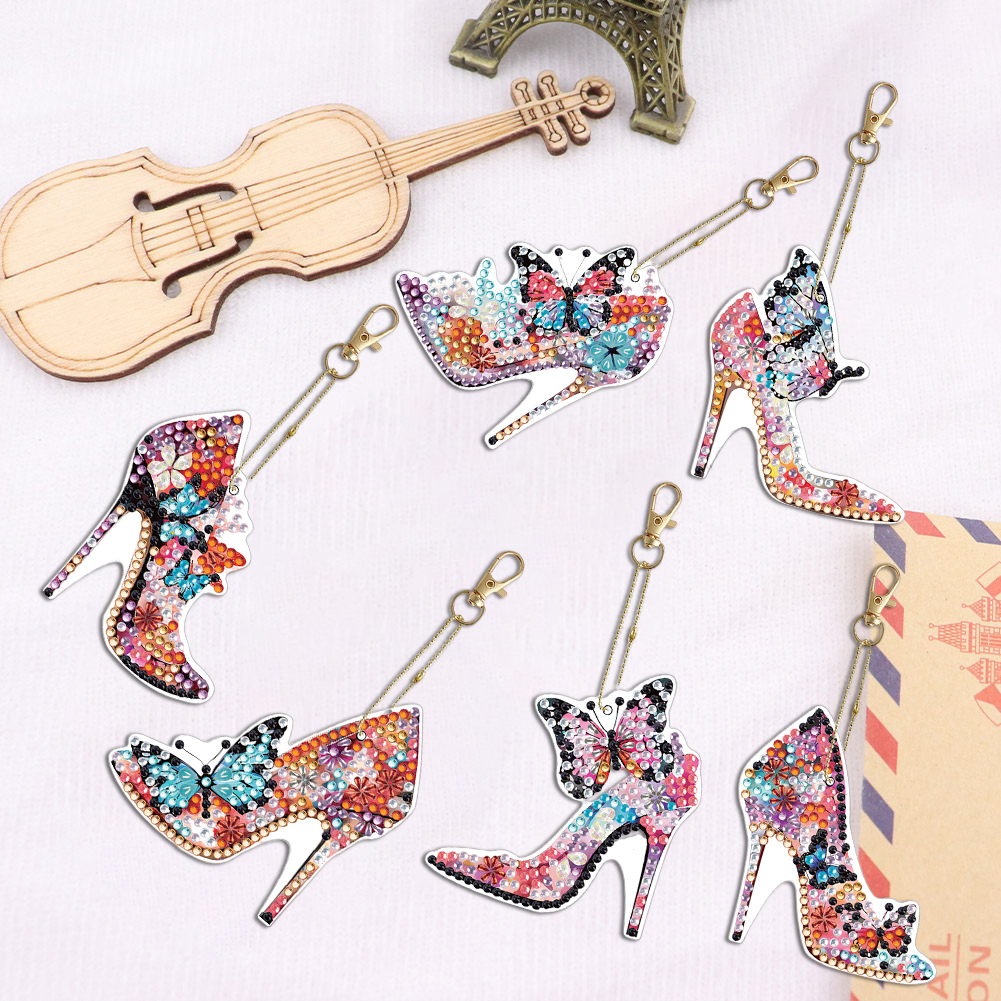6pcs DIY Butterfly High Heels Full Drill Diamonds Pendants Double Sided Gift for Kids
