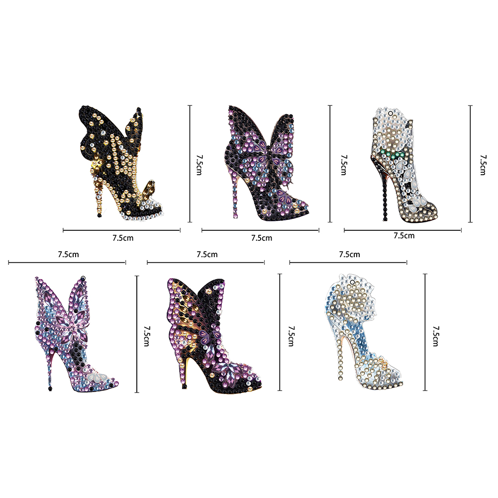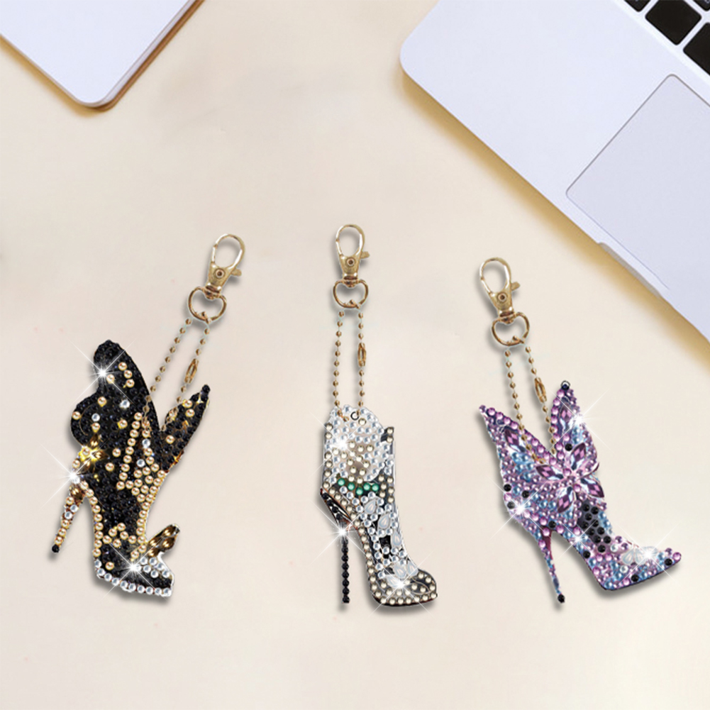 6pcs High Heels Diamond Art Keychains DIY Keychains Point Drill Key Ring(Double Side)