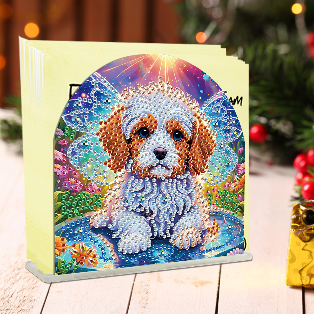 5D DIY Acrylic Dog Diamond Art Painting Napkin Holder Set Home Decor