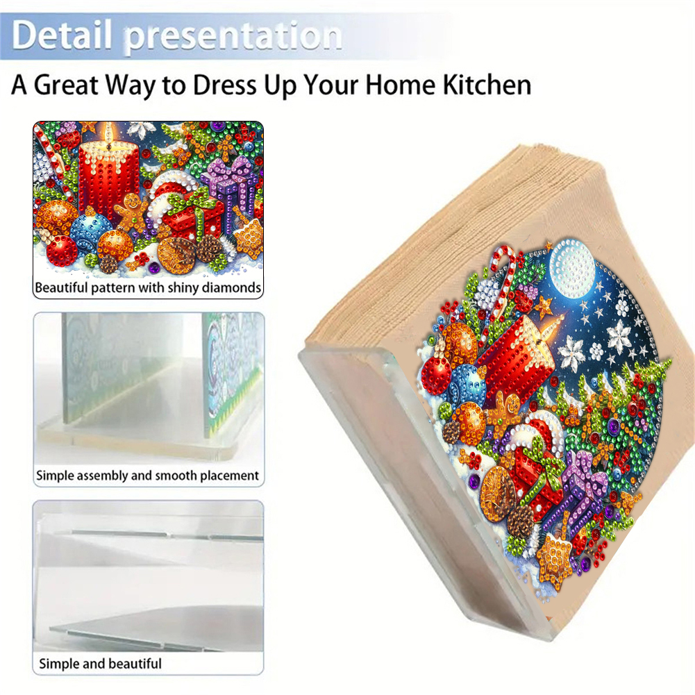 5D DIY Christmas Candle Acrylic Double Sided Diamond Art Paper Towel Storage Rack Decor