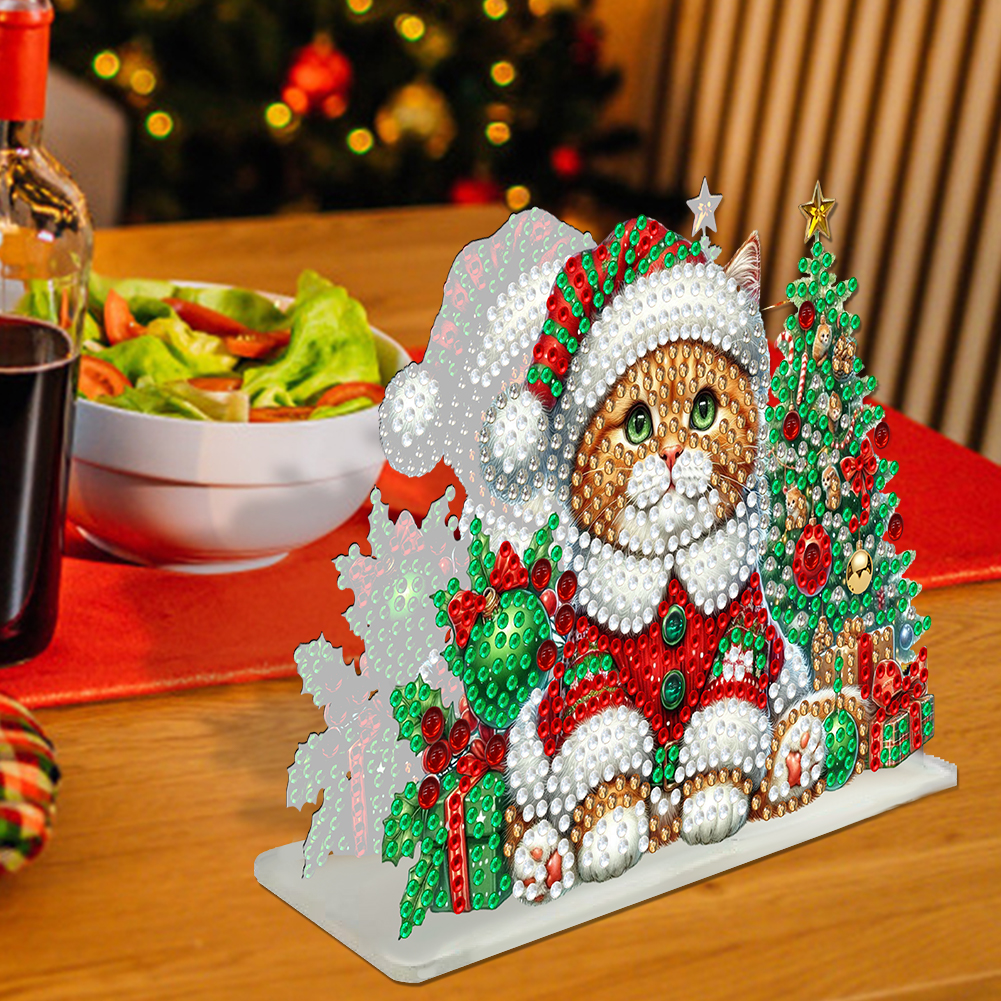 5D DIY Christmas Cat Acrylic Double Sided Diamond Art Paper Towel Storage Rack Decor