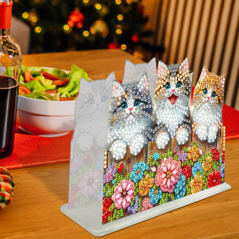 5D DIY Christmas Cat Acrylic Double Sided Diamond Art Paper Towel Storage Rack Decor