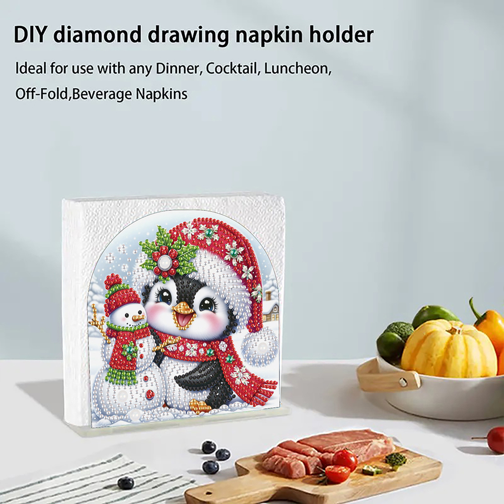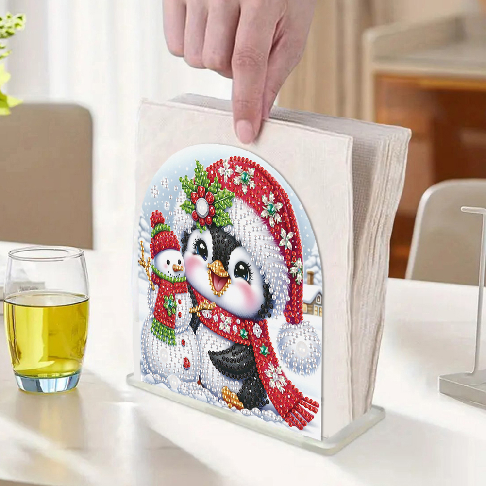 5D DIY Christmas Penguin Snowman Acrylic Diamond Art Painting Napkin Holder Set