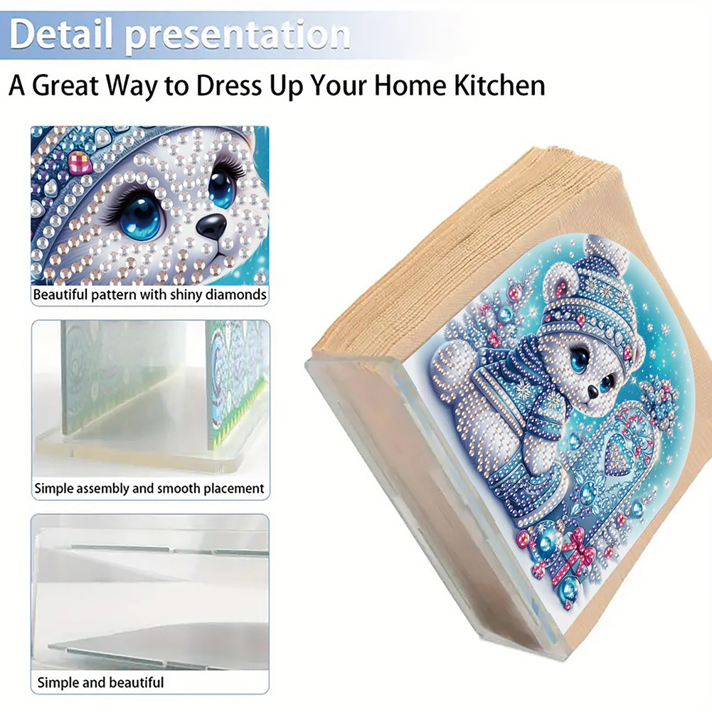 5D DIY Polar Bear Acrylic Diamond Art Painting Napkin Holder Set