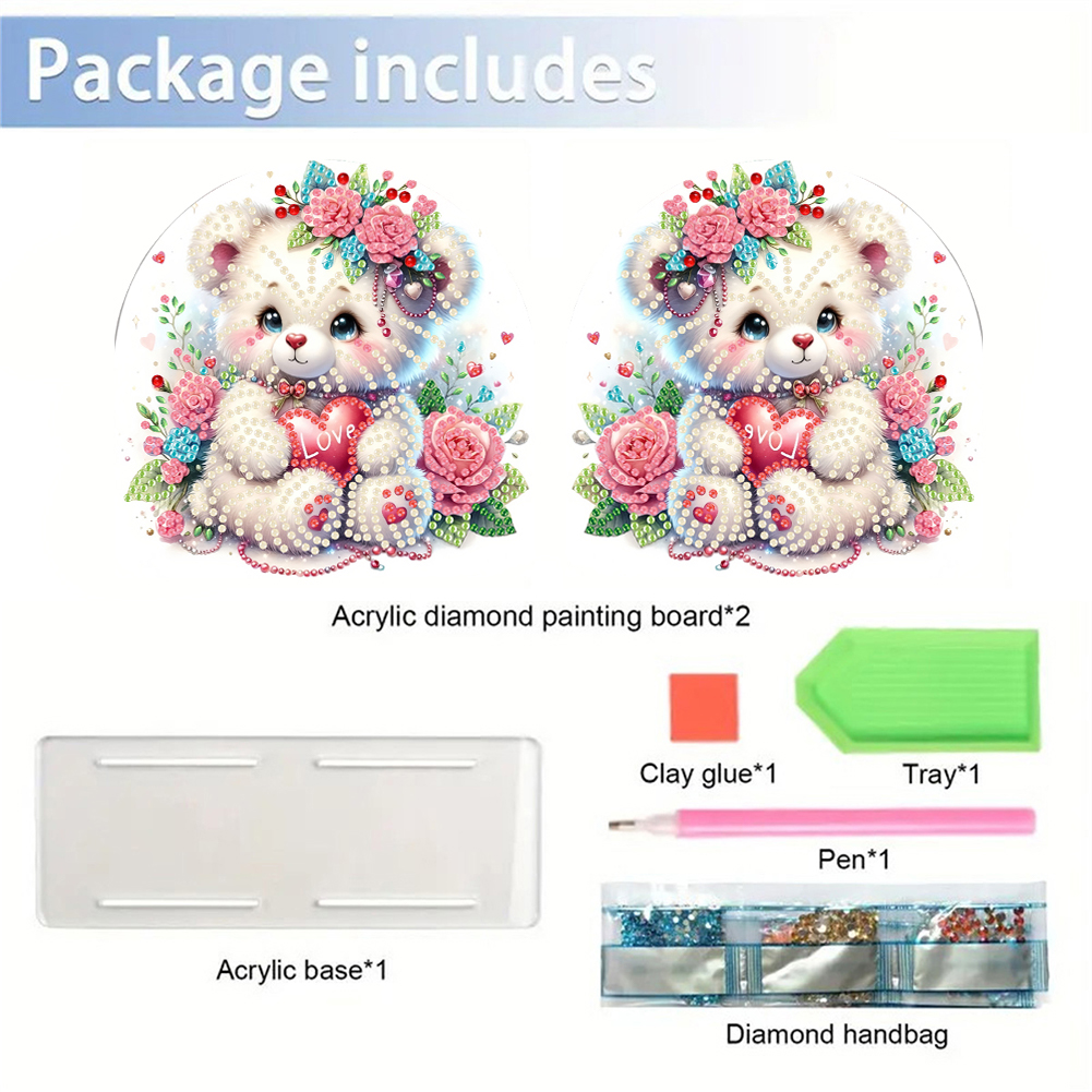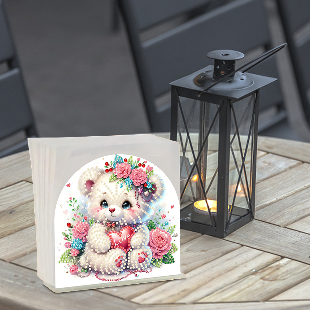5D DIY Rose Bear Acrylic DIY Diamond Art Painting Napkin Holder Set