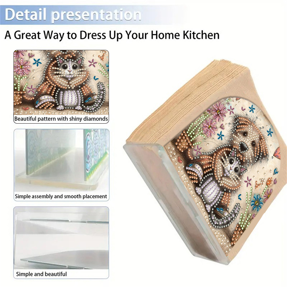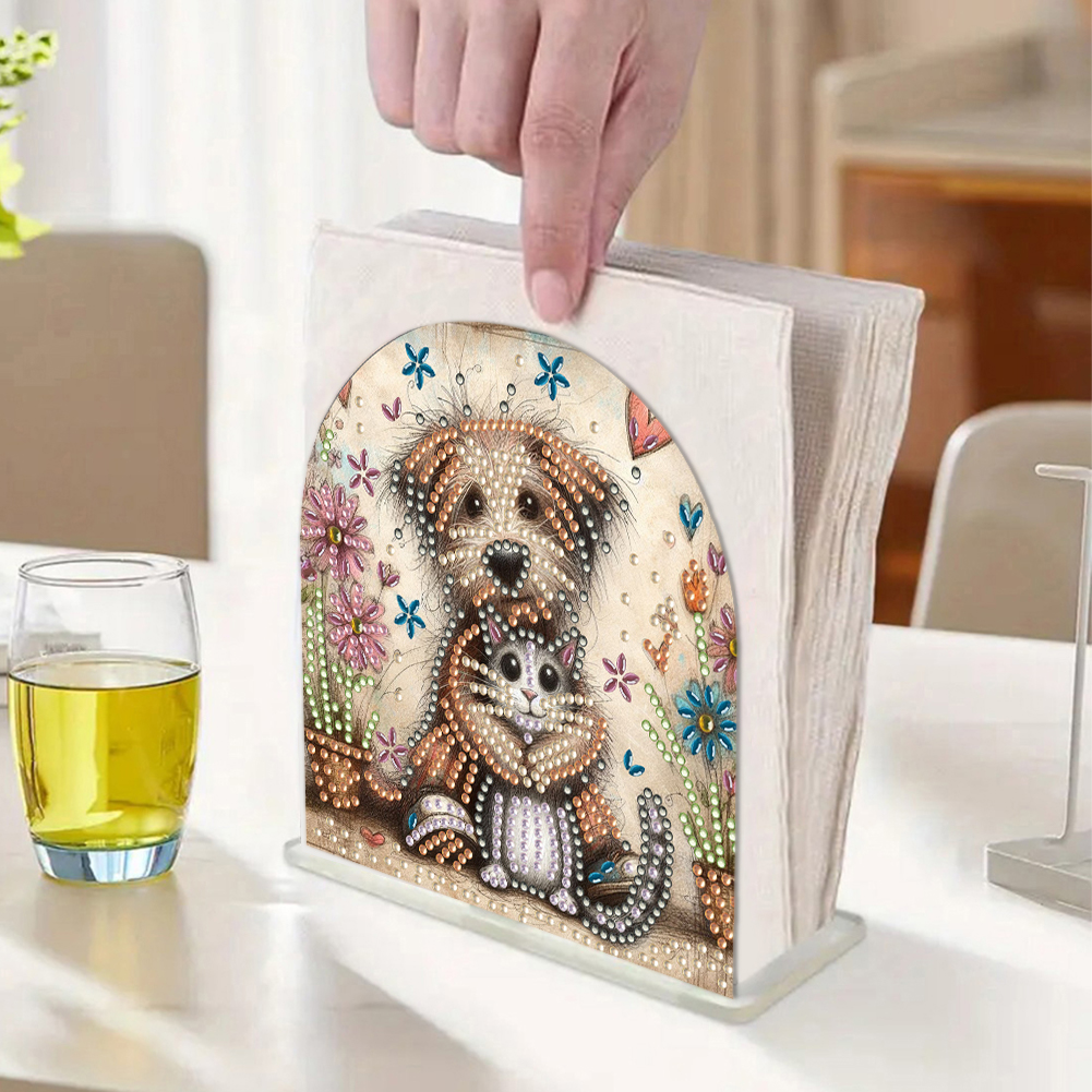DIY Acrylic Cats Dogs Diamond Painting Paper Towel Holder for Home Art Crafts
