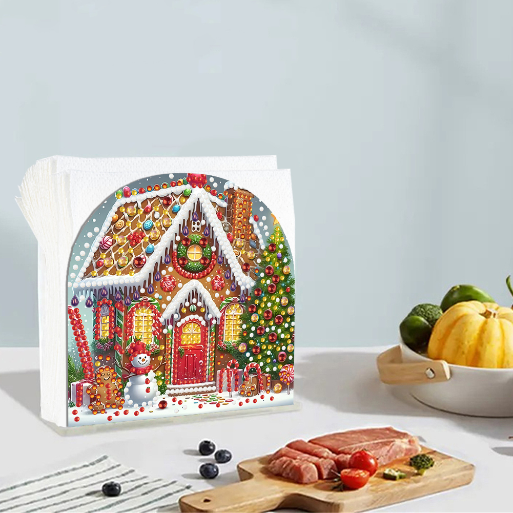 DIY Acrylic Christmas House Diamond Painting Paper Towel Holder for Home Art Crafts