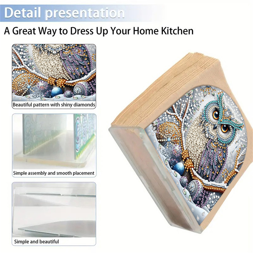DIY Acrylic Owl Diamond Painting Paper Towel Holder for Home Art Crafts