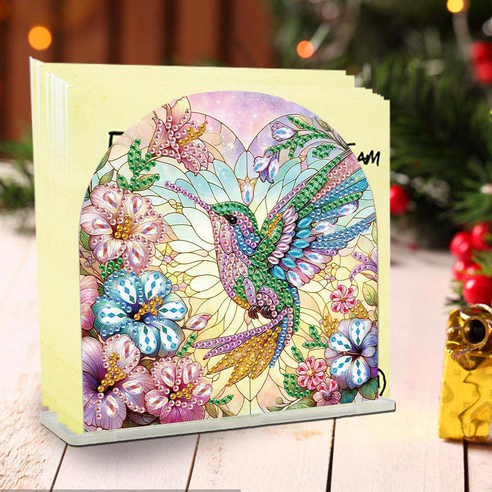 DIY Flower Hummingbird Acrylic Napkin Holder Diamond Painting Kit for Home Table Decor