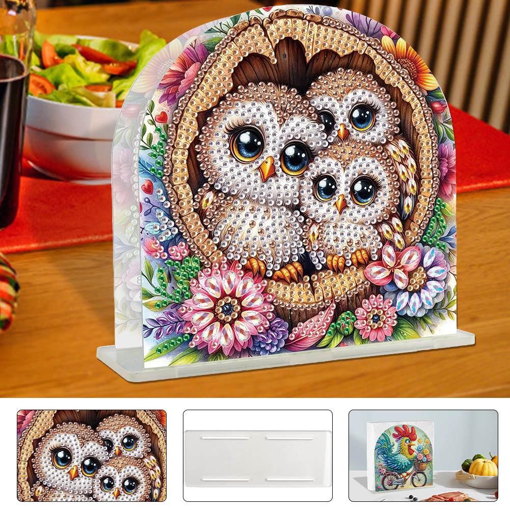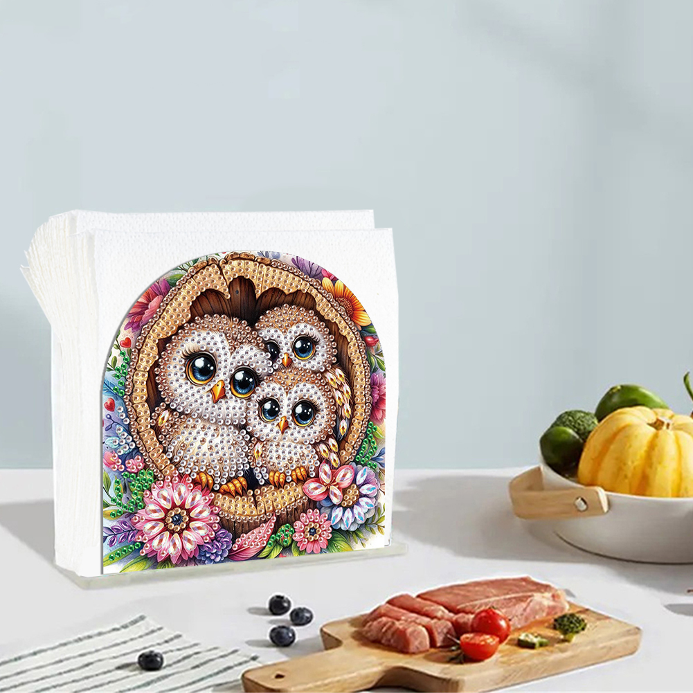 DIY Flower Owl Acrylic Napkin Holder Diamond Painting Kit for Home Table Decor