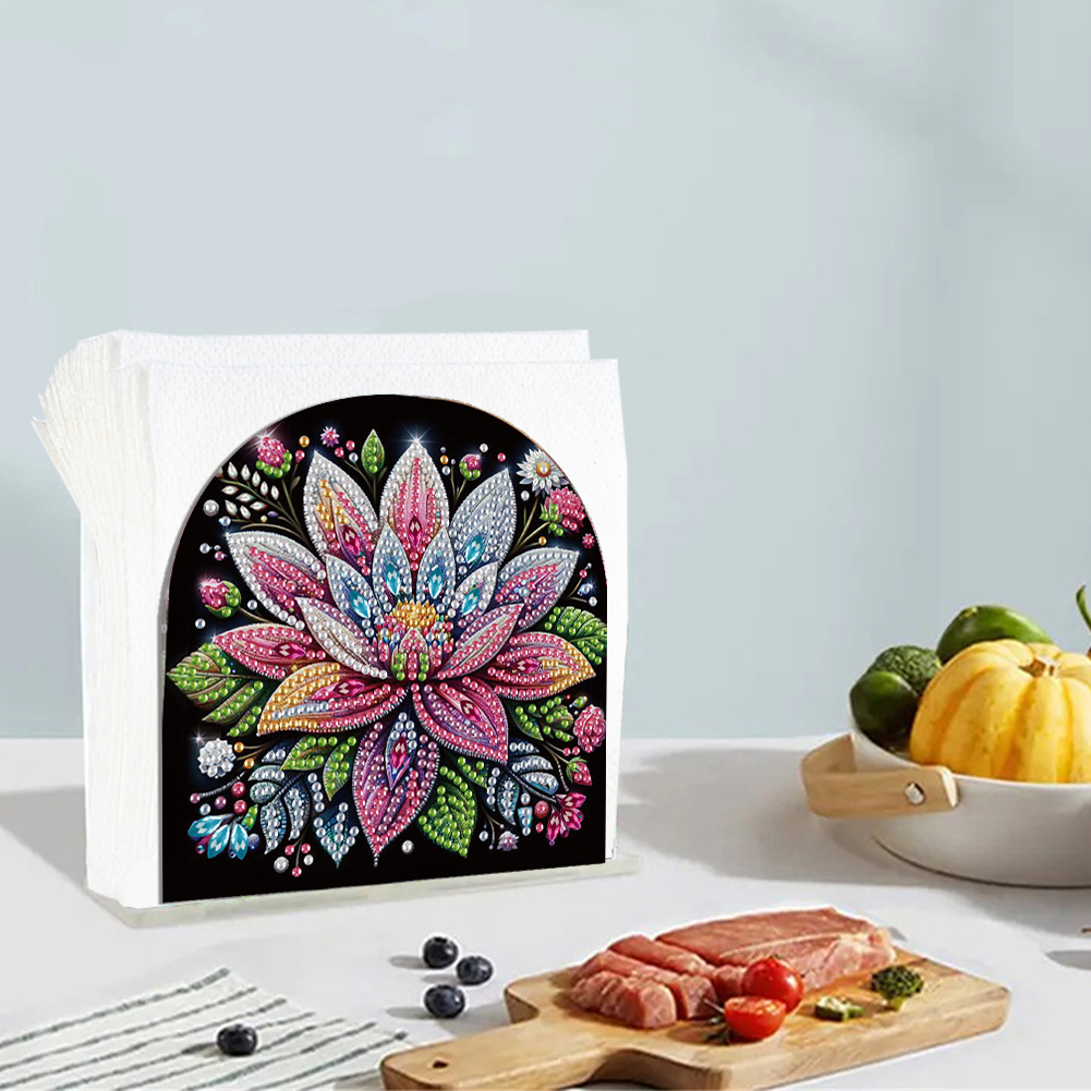 DIY Flowers Acrylic Diamond Painting Napkin Rack Diamond Art Paper Towel Holder