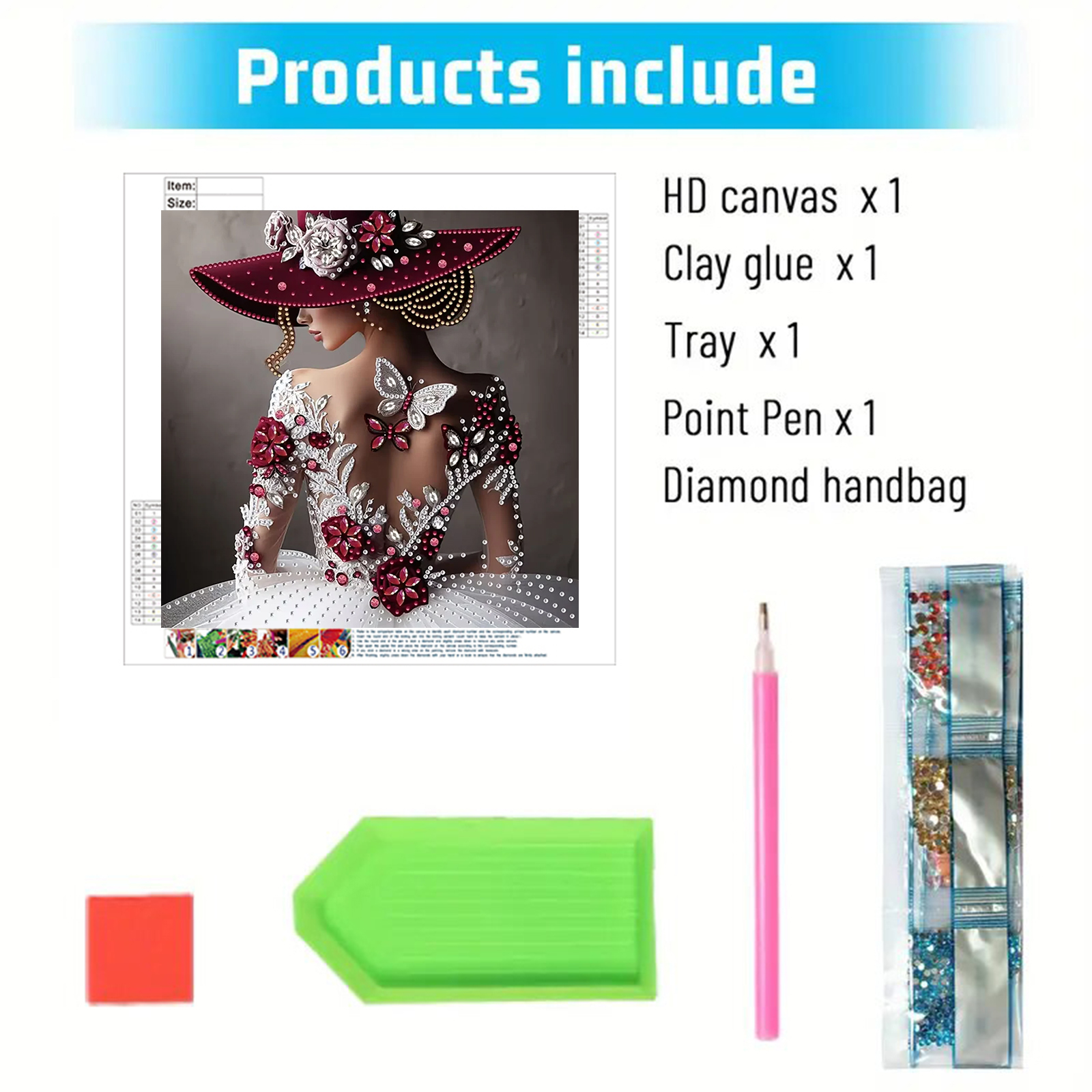 1. Open the packaging and verify all diamond painting tools are present;