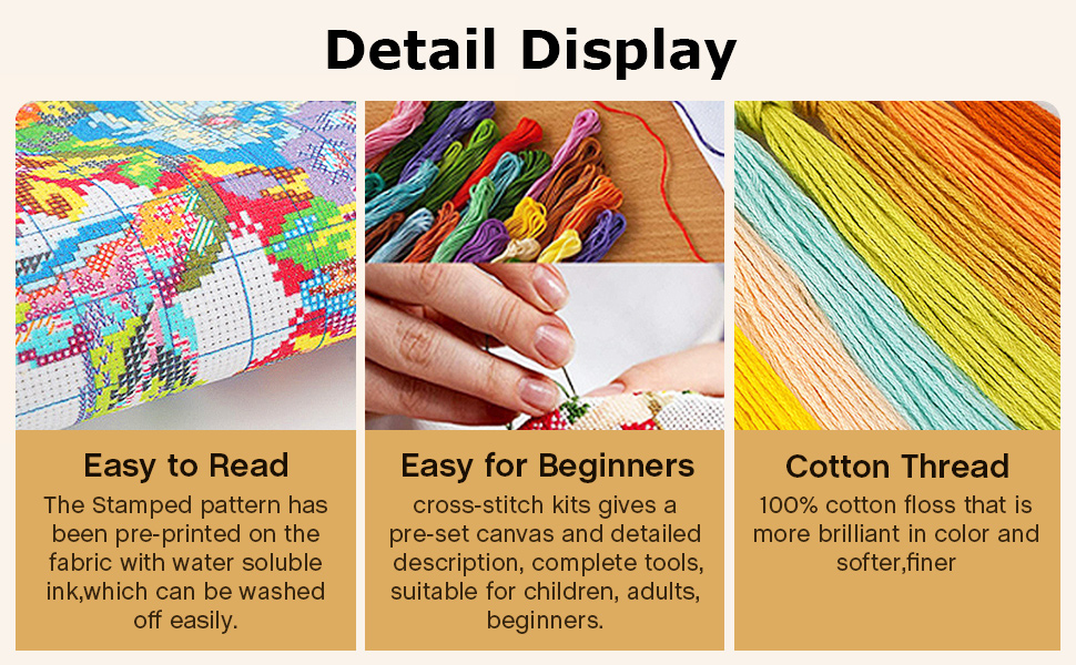 2. The natural cotton is soft, colorful and durable, making your cross stitch smooth, vivid and durable.