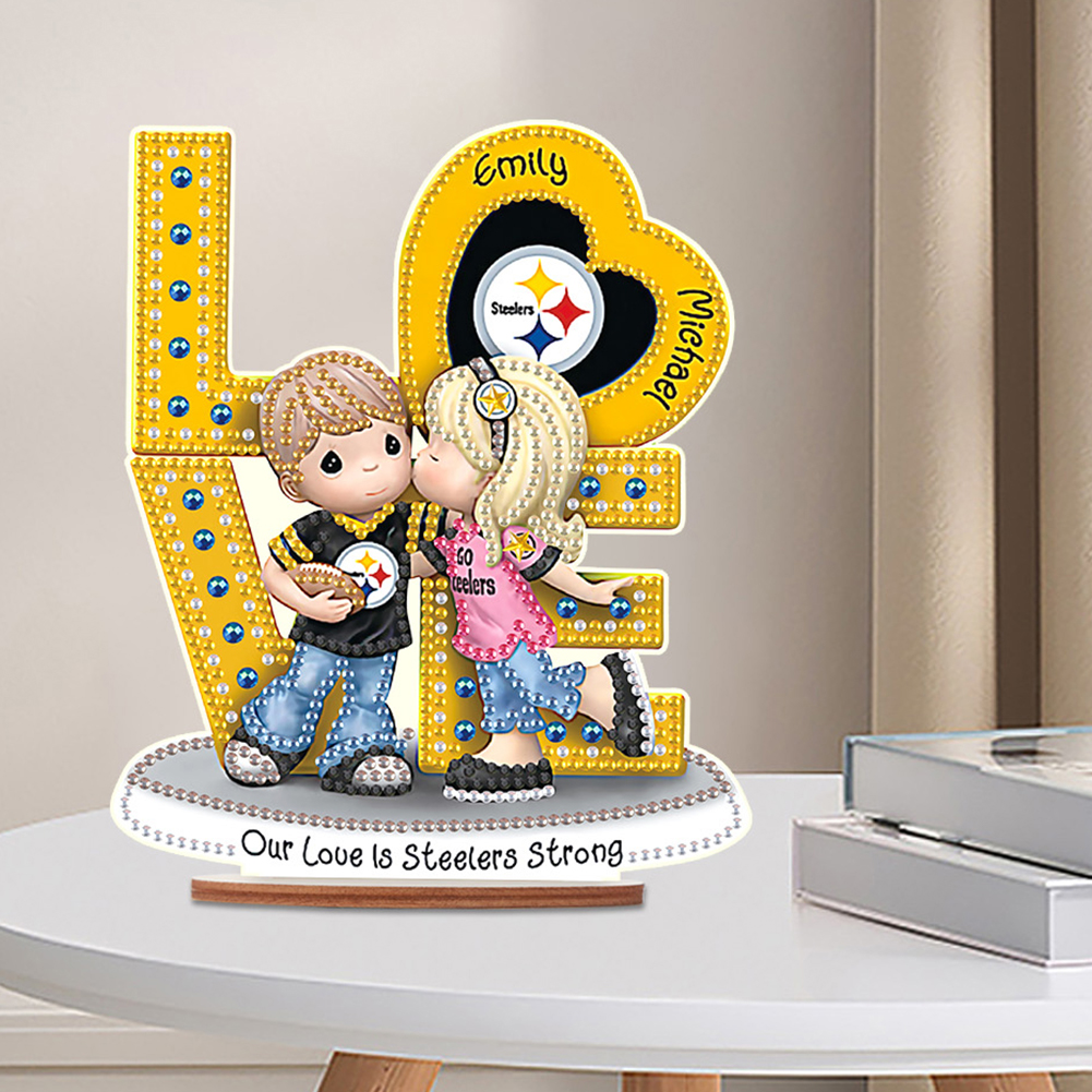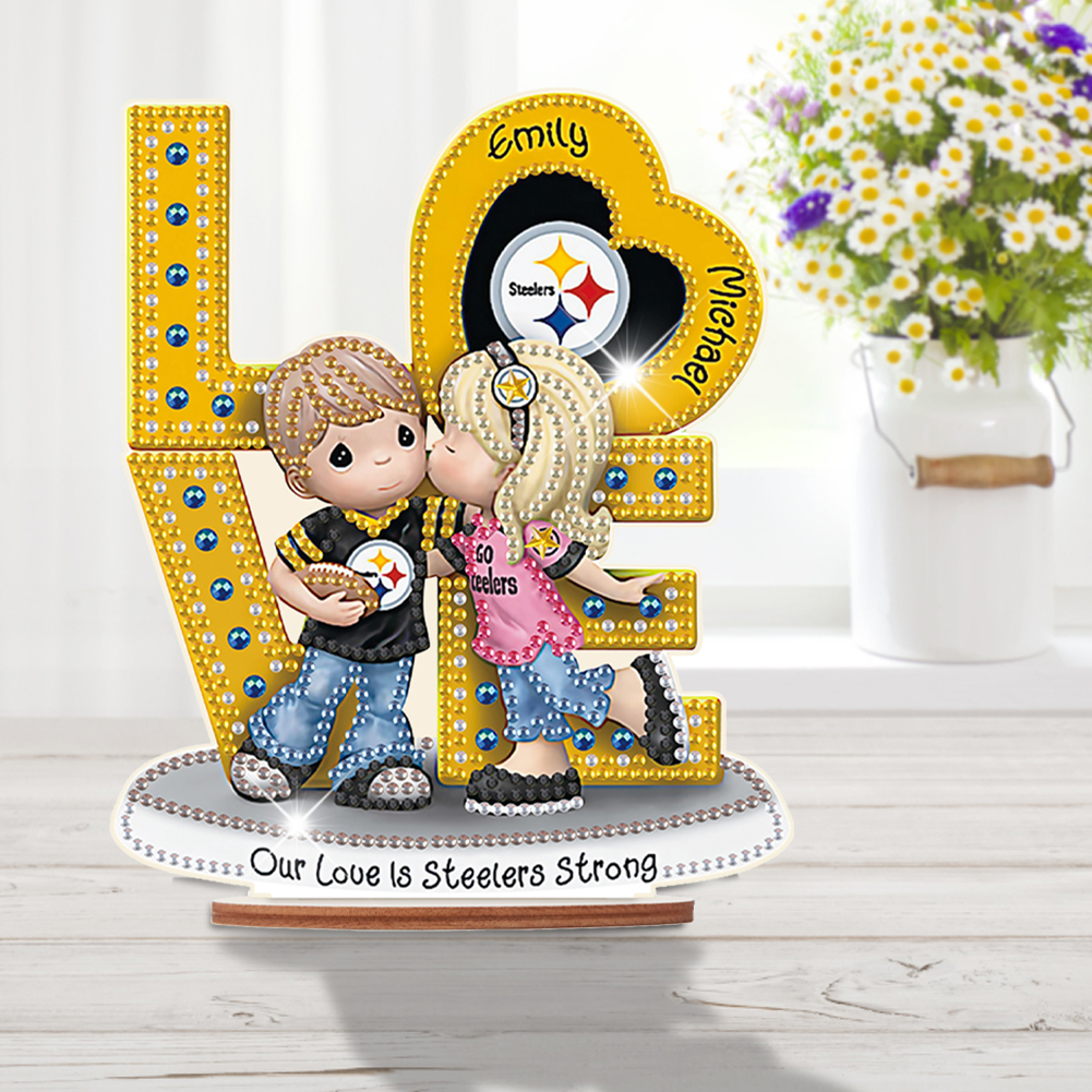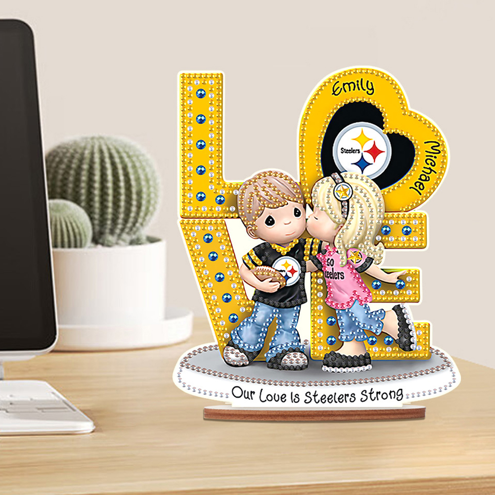 DIY LOVE Steelers Wooden Special Shape Diamond Painting Desktop Ornaments for Home Decor