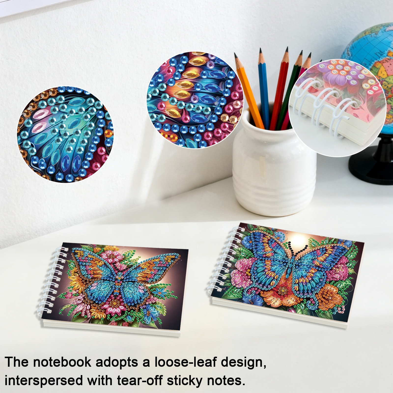 2 Pack Butterfly DIY Diamond Art Spiral Notebook Kit 80Pages No Lines Gifts