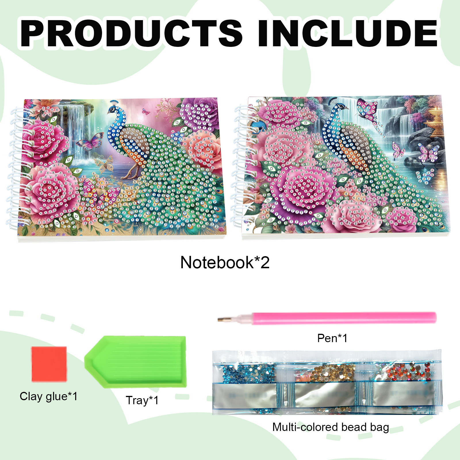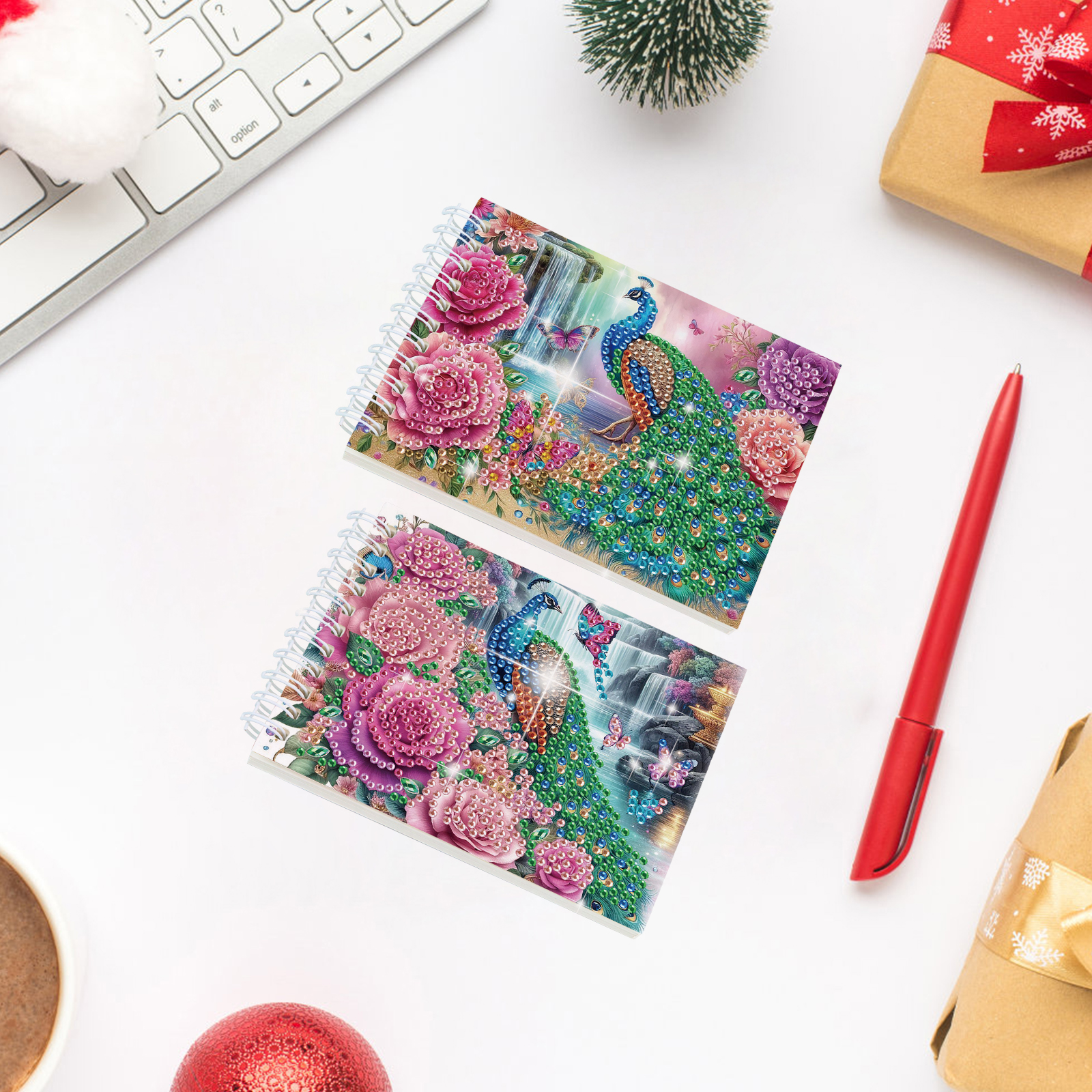 2 Pack Peacock DIY Diamond Art Spiral Notebook Kit 80Pages No Lines for Adults