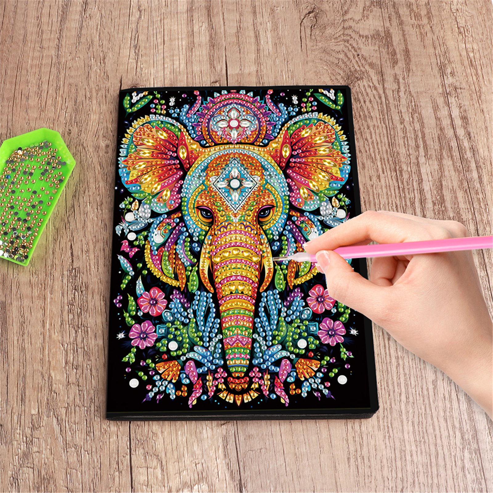 10. After adding all the crystals, you will have a dazzling diamond painting notebook. You can use it to jot down your daily tasks or innermost thoughts, or as a gift for loved ones.