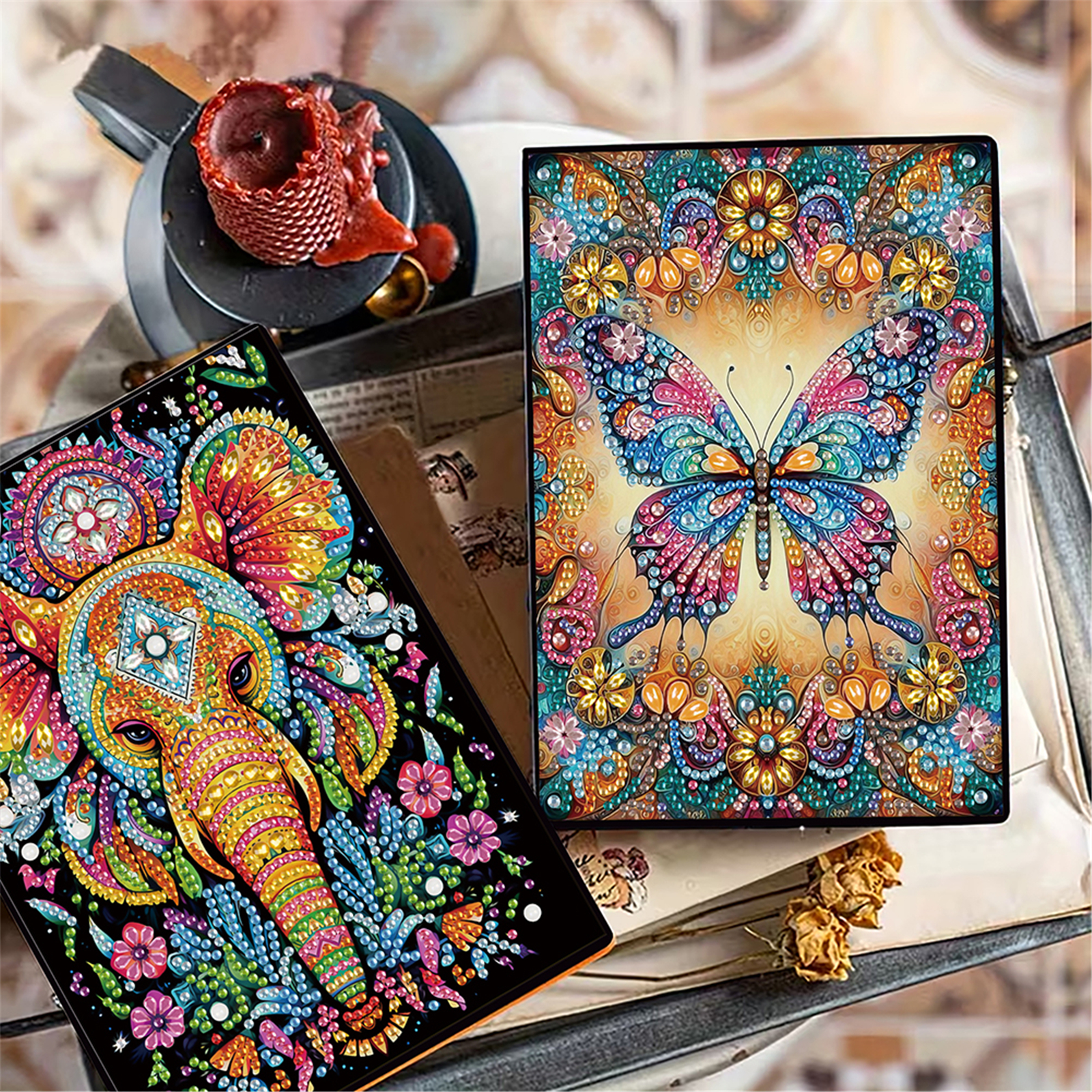 2pcs Animals Partial DIY 50 Pages A5 Diamond Painting Notebook for Study Home