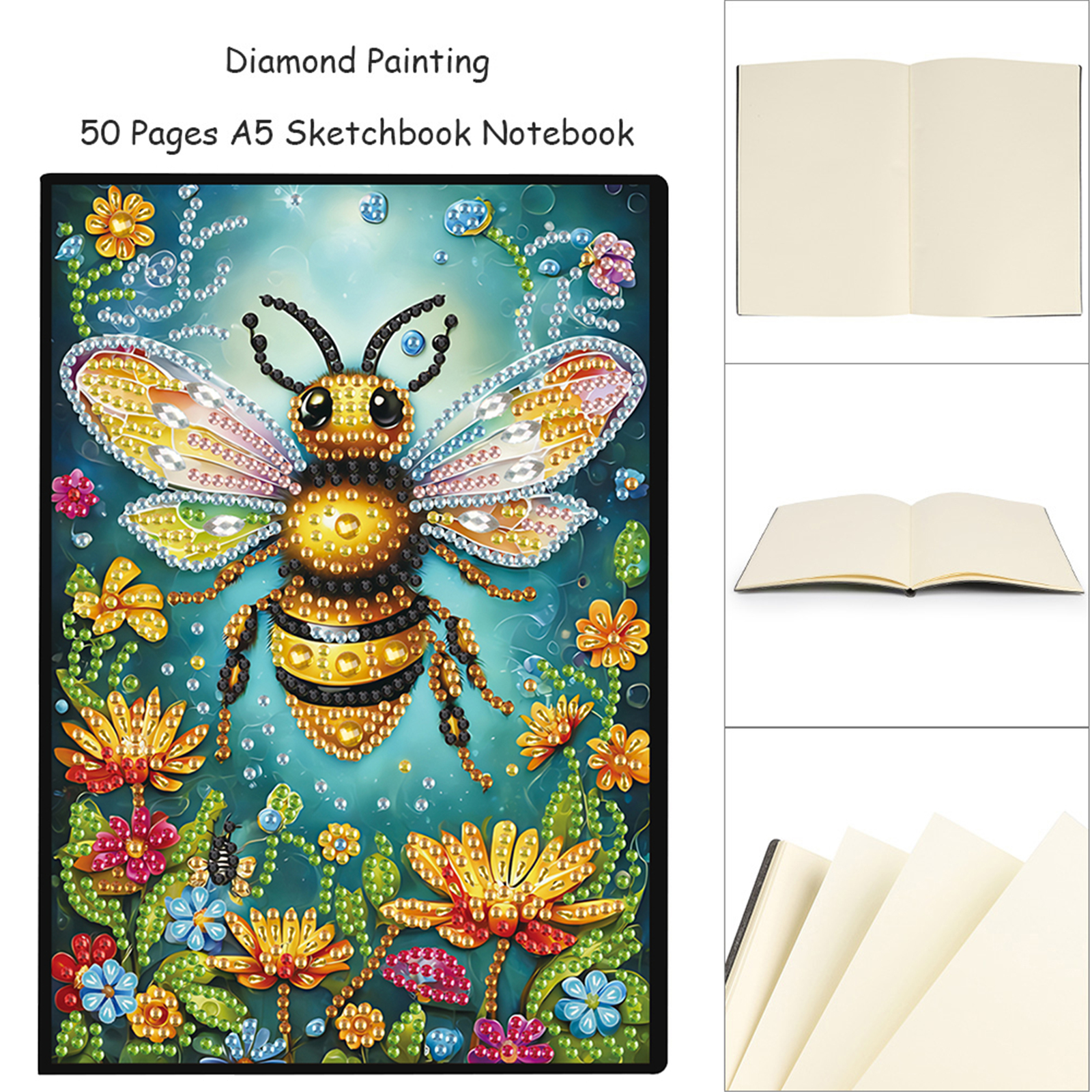 2pcs Bee Partial DIY 50 Pages A5 Diamond Painting Notebook for Study Drawing