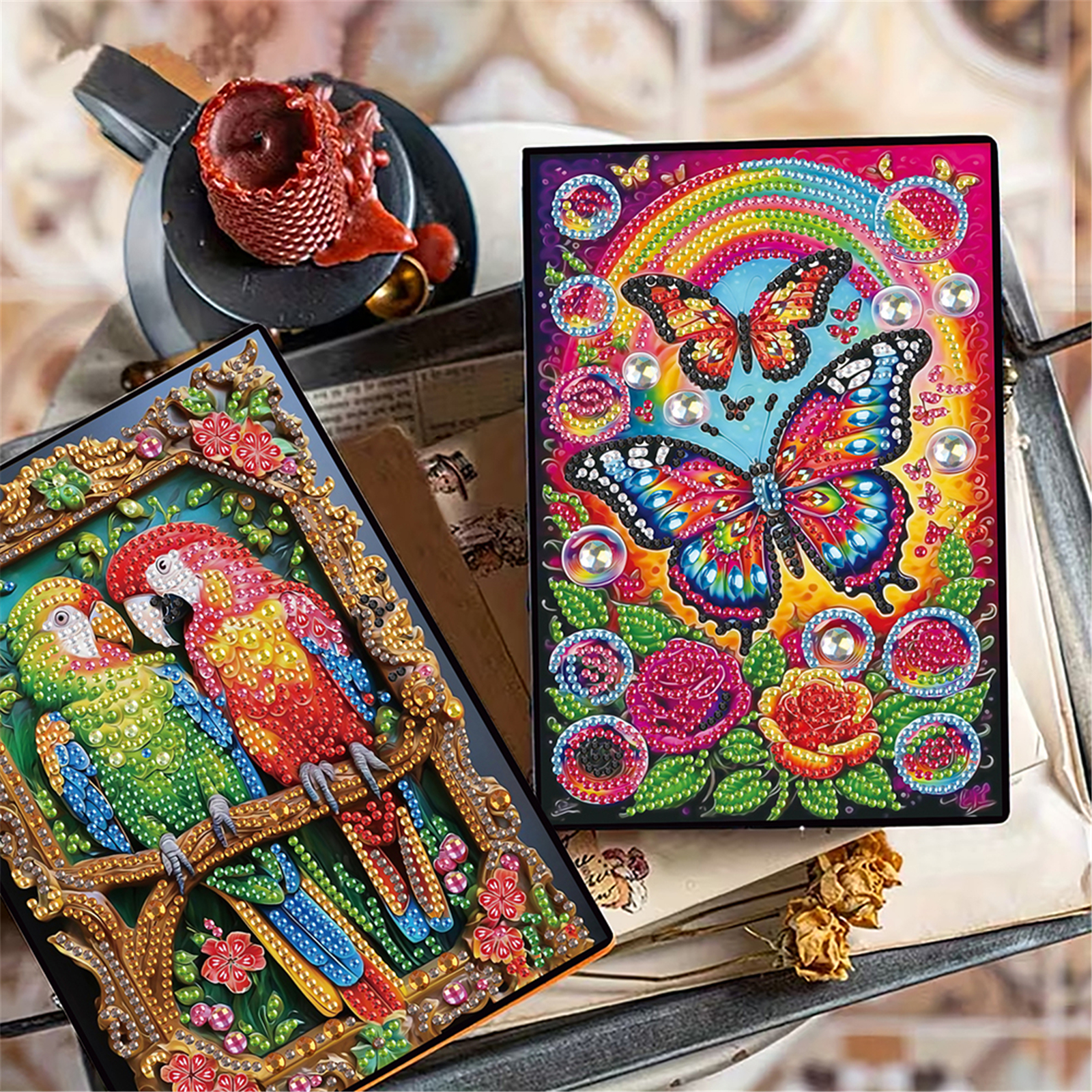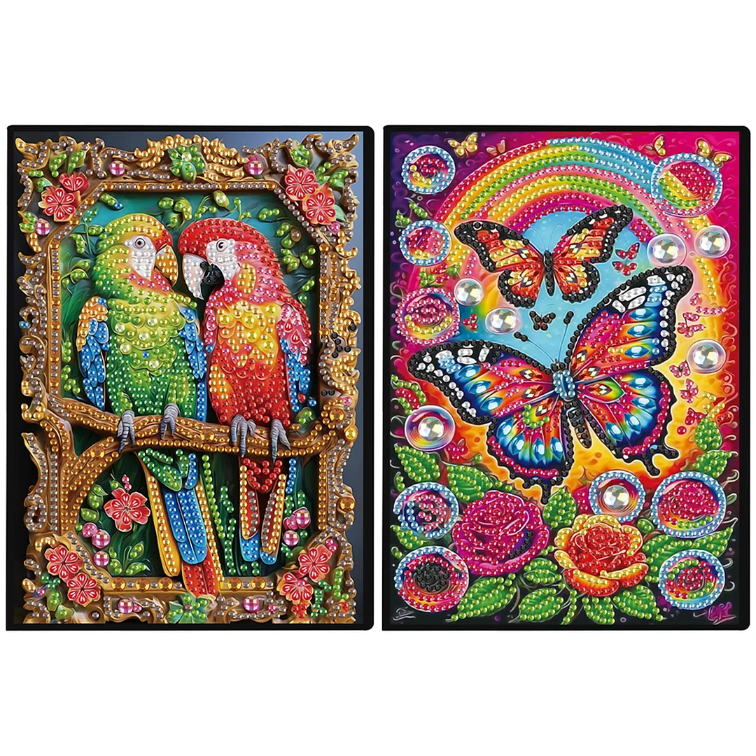 2pcs Bird Partial DIY 50 Pages A5 Diamond Painting Notebook for Study Drawing